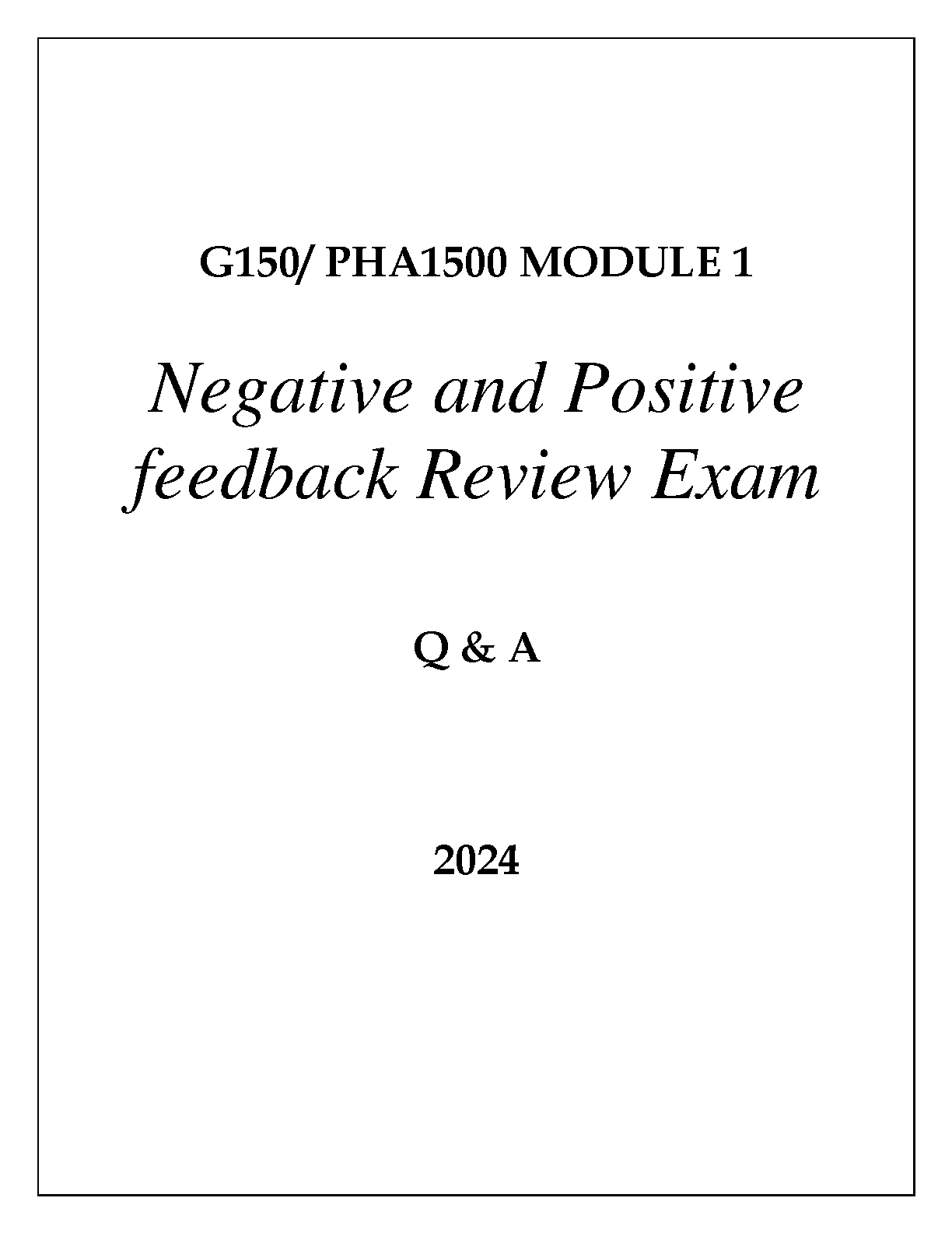 G150/PHA1500 Module 1 Negative and Positive Feedback Review Exam Q&A 2024