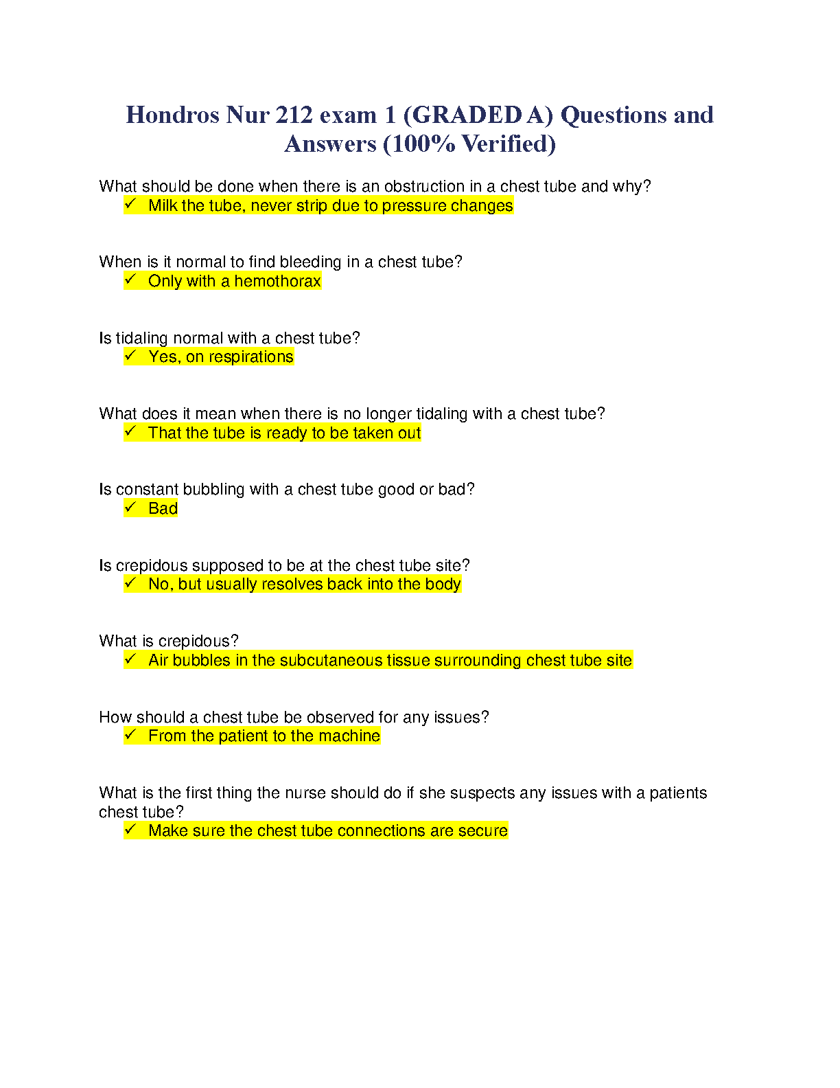 Hondros Nur 212 Exam 1 (GRADED A) Questions and Answers (100% Verified) - Ace Your Exam on the First Attempt!