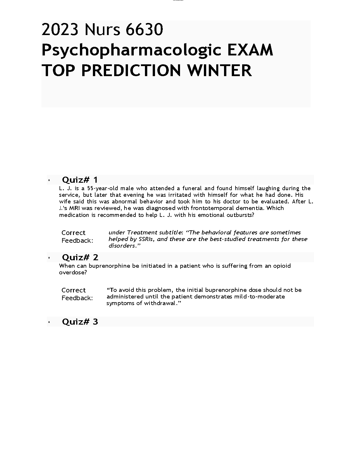 2023 Nurs 6630 Psychopharmacologic EXAM Top Prediction Winter - Ace Your Exam on the First Attempt!