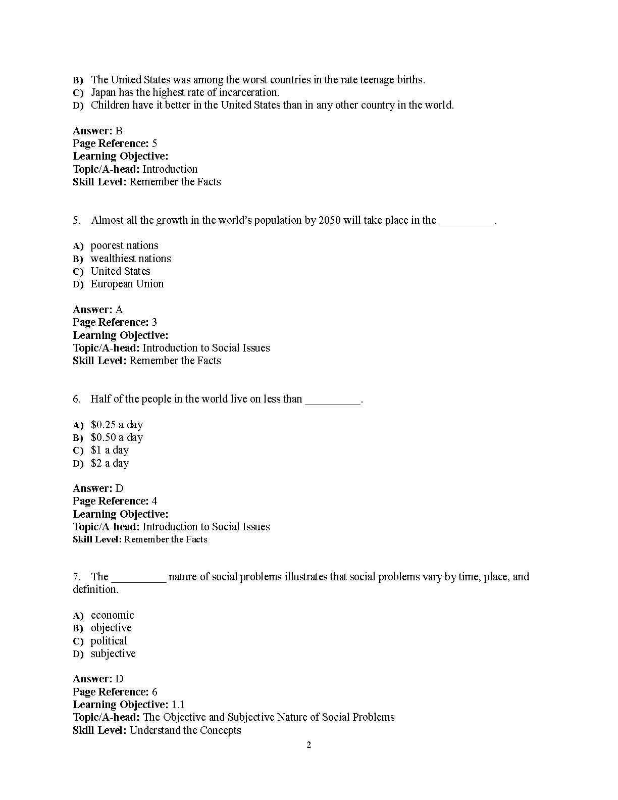 Test Bank For Social Problems A Down-to-Earth Approach 13th edition By Jim M. Henslin Social Problems Community Policy and Social Action 6th Edition Leon-Guerrero Test Bank NUR 2392 / NUR2392 Multidimensional Care II Exam 2 Review | LATEST| Rasmussen College 1. Cancer Treatment Cancer treatment is dependent on the type of cancer and how far the cancer has progressed. 2. Common problems associated with cancer treatment include infections, bleeding, pain, malnutrition, fatigue, and psycho social issues. 3. curative surgery Removal of the cancerous tumor when confined to a specific body location 4. palliative surgery Is performed to treat the problems that the cancer or treatment of cancer has created. 5. prophylatic surgery Is performed to remove tissues that are not cancerous but can become cancerous. 6. diagnostic surgery Is performed in order to determine if cancer cells are present 7. Reconstruction/Restorative surgery Is performed following treatment to restore the patients body function such as breast reconstruction following a mastectomy. 8. Pre-operative care Ensure necessary test are performed such as blood work, EKG and chest x ray and ensure the patient has remained NPO for the required time frame 9. Education Patient education regarding the type of procedure, post-operative, management to include any restrictions, wound care, signs and symptoms of infection, medication, follow up treatment, and follow up appointments 10. Nutrition Ensure the patient has a consult for the dietitian to assess nutritional and cultural needs Pain Control Ensure adequate pain control by assessing a patients' pain level frequently and administering the prescribed medications. 11. Post-op complications Assess for post operative complications such as bleeding, infection, respiratory problems such as acute respiratory distress, pneumonia, and deep Test Bank For Social Problems A Down-to-Earth Approach 13th Edition (Global Edition) By Jim Henslin TEST BANK for Understanding Social Problems 11th Edition. by Linda A. Mooney; Molly Clever; Marieke Van Willigen. All Chapters 1-15. (Complete Download). Test Bank For Social Problems and the Quality of Life 15th Edition By Robert Lauer and Jeanette Lauer Chapter 1-15 Solution Manual For Social Problems, 2025 9th Edition by John J. Macionis TEST BANK for Understanding Social Problems 11th Edition. by Linda A. Mooney; Molly Clever; Marieke Van Willigen HESI Health Assessment Study Guide History Taking Child • Biographic Data: Include the child's name, nickname, address and phone number, parents' names and work numbers, child's age and birth date, birthplace, sex, race, ethnic origin, and information about other children and family members at home. • Source of History: 1. Person providing information and relation to child 2. Your impression of reliability of information 3. Any special circumstances (e.g., the use of an interpreter) • Reason for Seeking Care: Record the parent's spontaneous statement. Because of the frequency of well-child visits for routine health care, there will be more reasons such as “time for the child's checkup” or “she needs the next baby shot.” Reasons for health problems may be initiated by the child, the parent, or a third party such as a classroom teacher or social worker. Sometimes the reason stated may not be the real reason for the visit. A parent may have a “hidden agenda,” such as the mother who brought her 4-year- old child in because “she looked pale.” Further questioning revealed that the mother had heard recently from a former college frie absolute location - ANSWER The actual space a place occupies on Earth's surface acculturation - ANSWER The change that occurs within a culture when it adopts a practice from another culture agglomeration effects - ANSWER The cost advantages (external economies) for an individual company gained by locating near similar industries or companies agribusiness - ANSWER Commercial agriculture in which large corporations own and operate various steps in the production process with an emphasis on profit agricultural density - ANSWER The number of people living in rural areas per unit of agricultural land alliance - ANSWER An association among countries for the purpose of mutual defense or trade animism - ANSWER The belief that spirits (including ancestral) live within objects such as animals, rivers, rocks, trees, and mountains antecedent boundary - ANSWER A boundary placed before the cultural landscape was developed artifact - ANSWER Tangible pieces of material culture assimilation - ANSWER The process in which immigrants become totally integrated into the host culture backwash effect - ANSWER The negative impact to the peripheral region sometimes caused by increased flows of labor and capital into a nearby high-growth region bid rent curve - ANSWER The concept that the concentric circles in Burgess's concentric zone model are based on the amount people are willing to pay for land in each zone biotechnology - ANSWER The application of scientific techniques to modify and improve plants, animals, and microorganisms to enhance their value built environment - ANSWER The material culture of an environment carrying capacity - ANSWER The number of people an area can support on a sustained basis central business district (CBD) - ANSWER The business area found at the center of every older central city and urban area central place theory - ANSWER A theory developed by Walter Christaller that states that cities exist for economic reasons and that people gather in cities to share goods and ideas centrifugal force - ANSWER A strong, divisive force, such as religious differences or a weak communication systems, at work in a country centripetal force - ANSWER A strong, unifying force, such as a charismatic leader or nationalism, at work in a country chain migration - ANSWER The part of a migrant flow (usually relatives and friends) that follows former migrants to an area charter group - AN