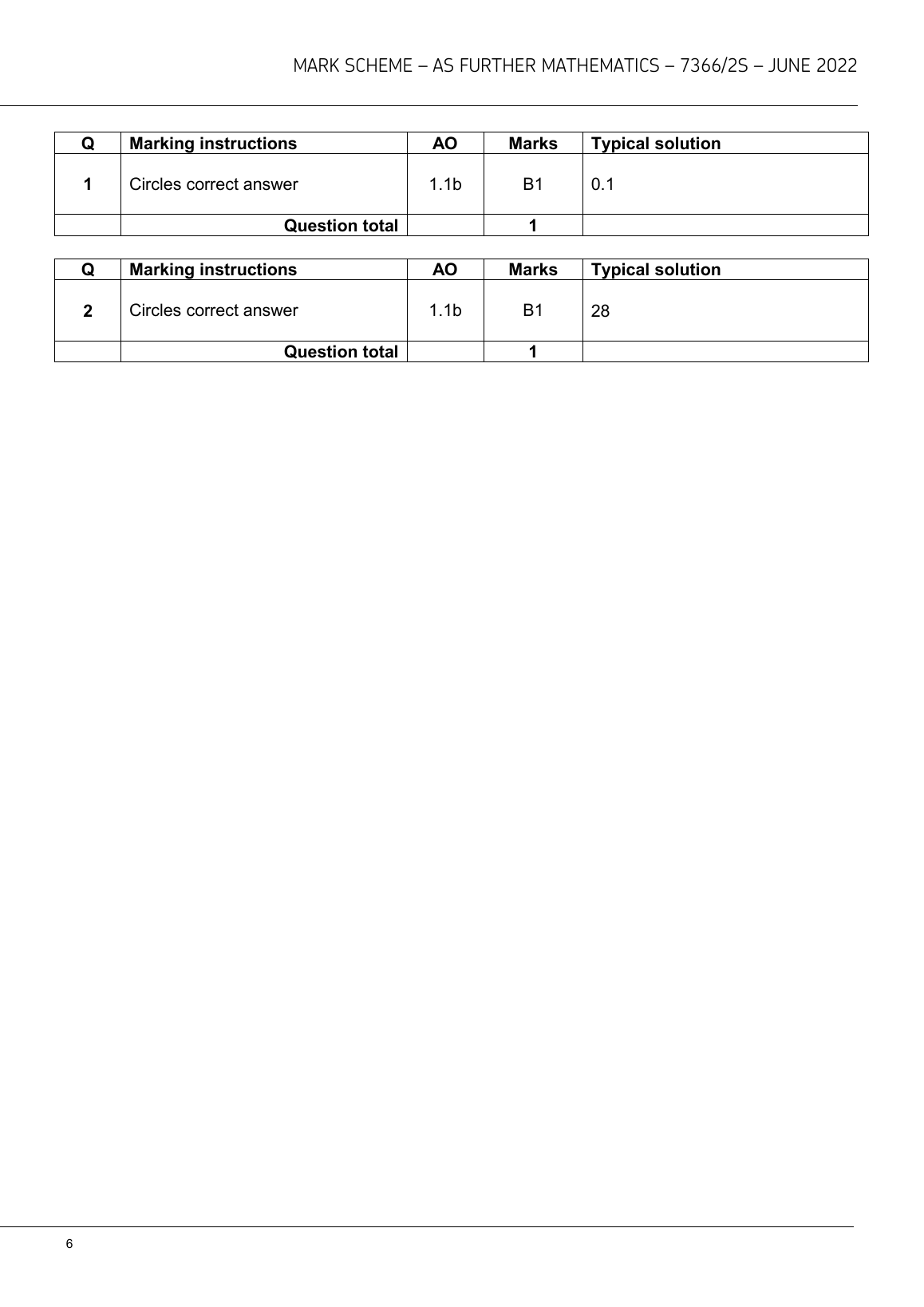 AQA AS FURTHER MATHEMATICS PAPER 2 JUNE 2022 MARK SCHEME (7366/2S: Statistics)