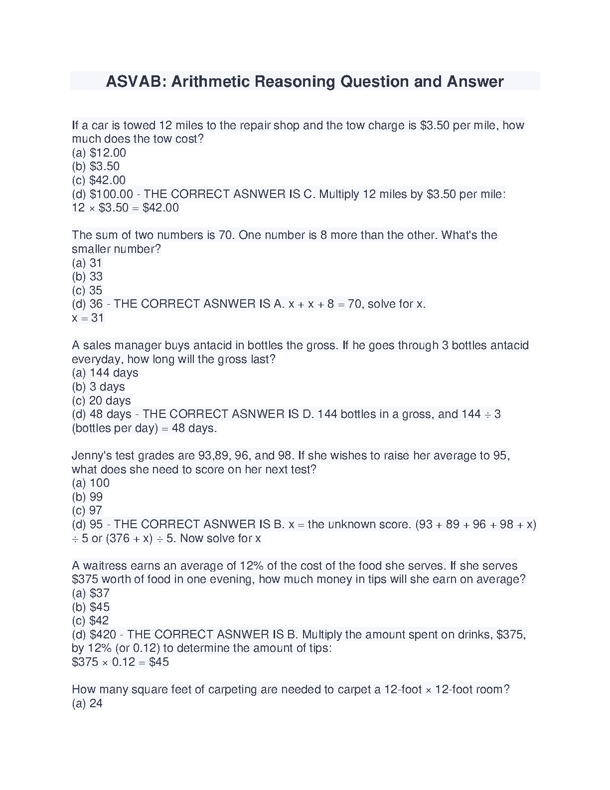 ASVAB: Arithmetic Reasoning Question and Answer 2023. DOWNLOAD on www.hackedexams.com INSTANTLY.