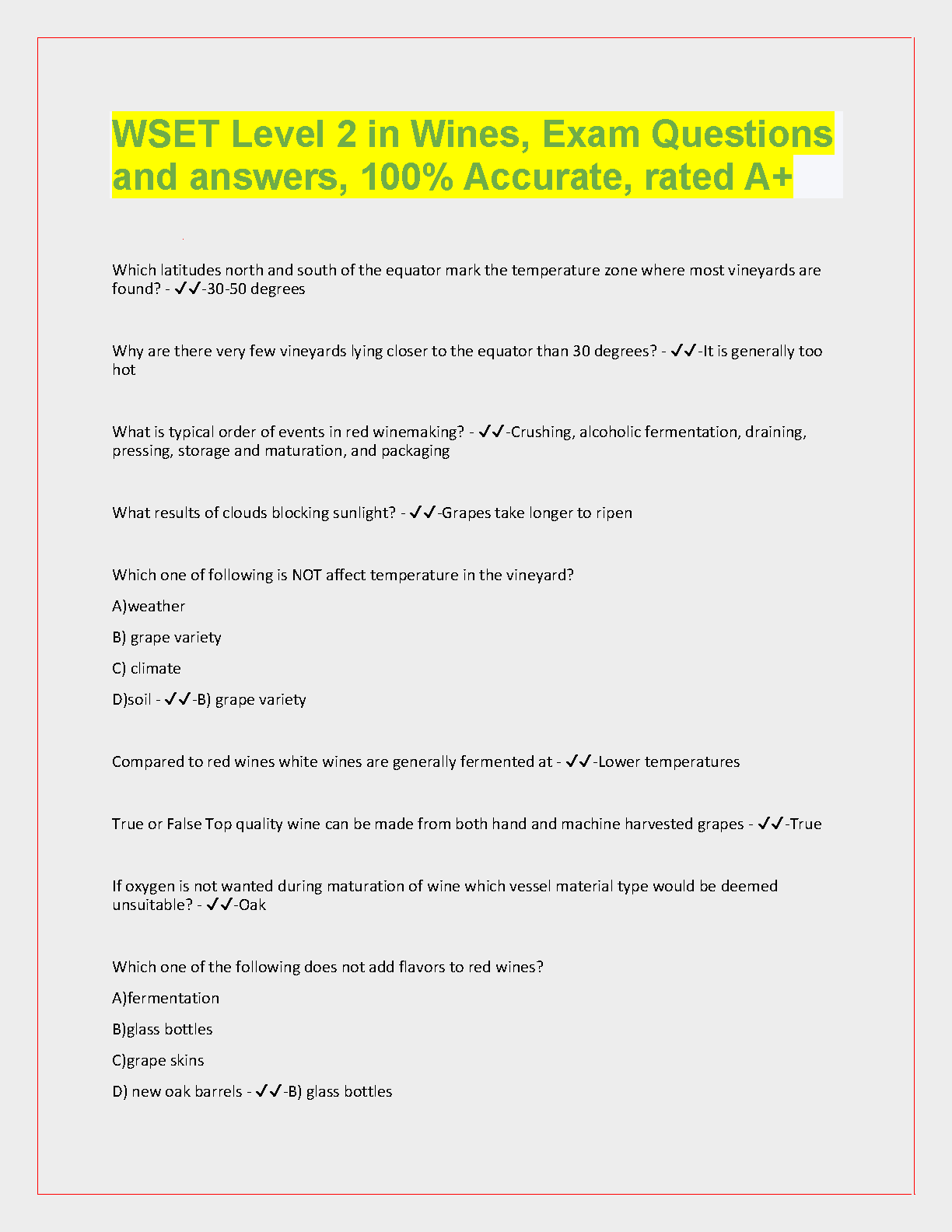 WSET Level 2 in Wines Exam Questions and Answers 2024/2025 Edition: Ace Your Exam on the First Attempt