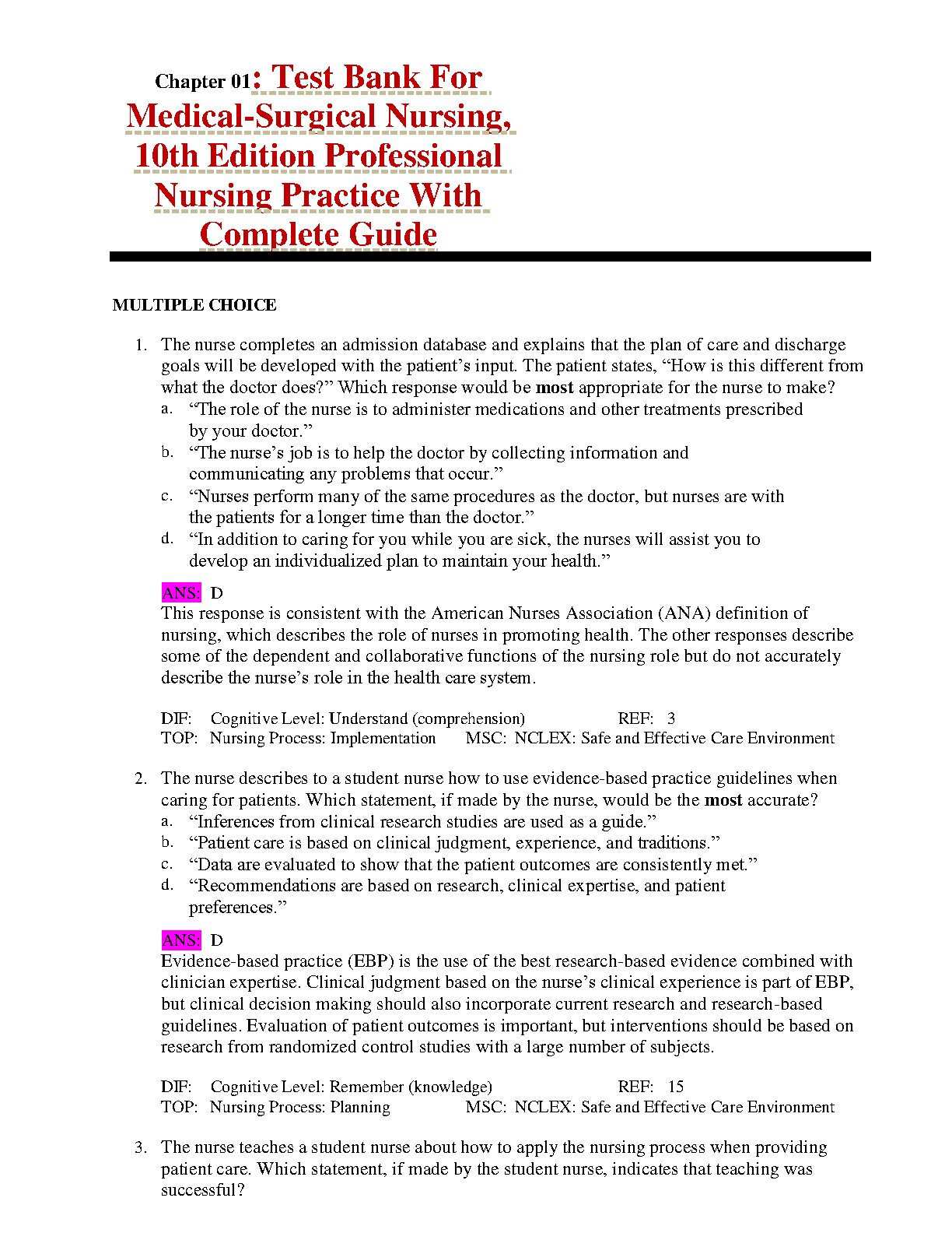 Medical-Surgical Nursing 10th Edition Test Bank by Lewis, Bucher, Heitkemper, Harding, Kwong, Roberts