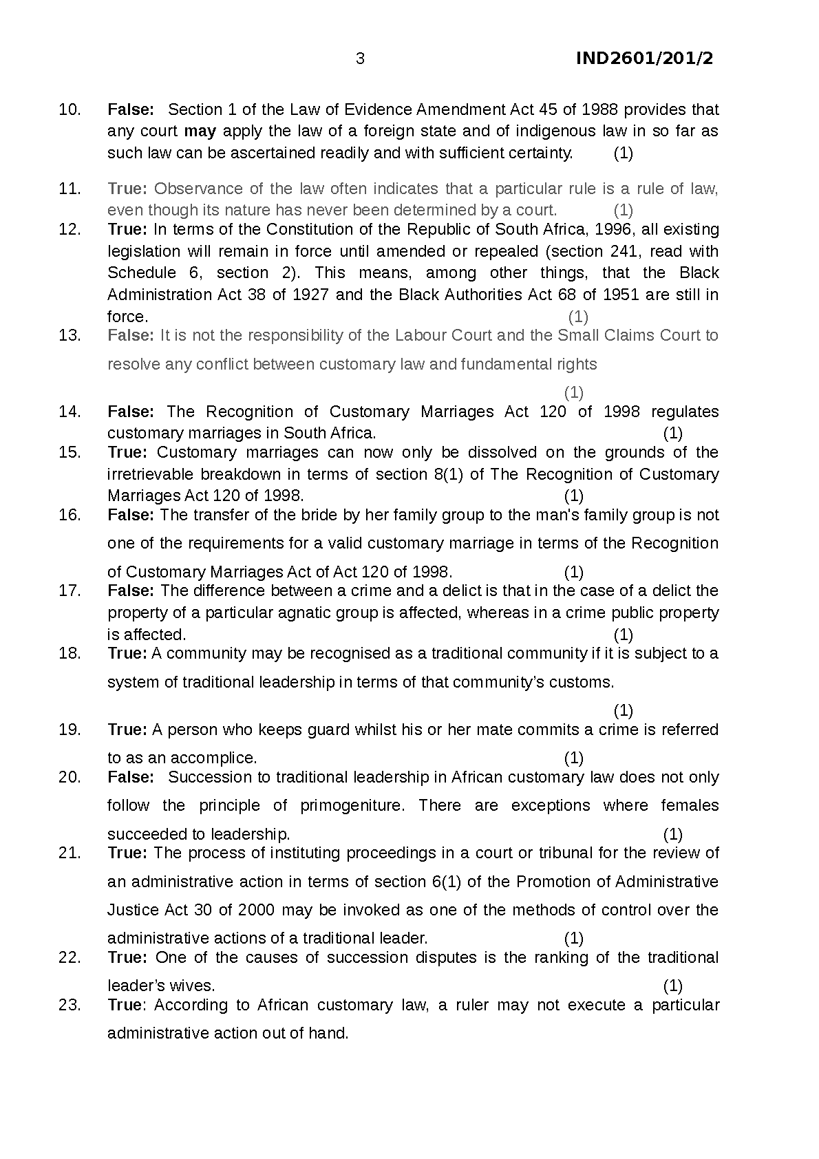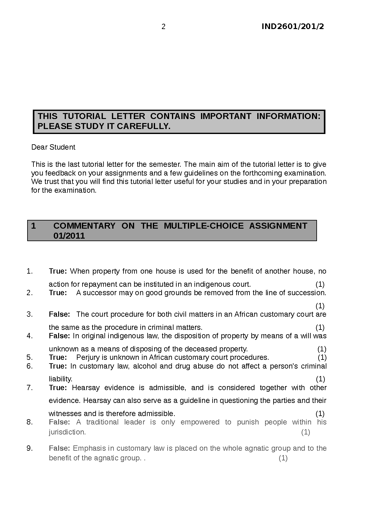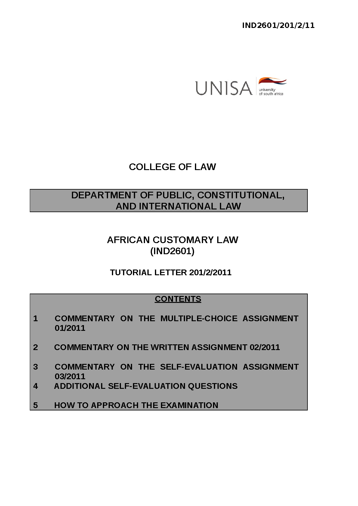 African Customary Law (IND2601) 201/2/2011 Tutorial Letter