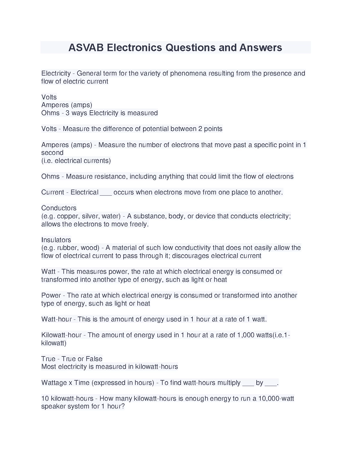 ASVAB Electronics Questions and Answers 2023/2024. DOWNLOAD on www.hackedexams.com INSTANTLY.