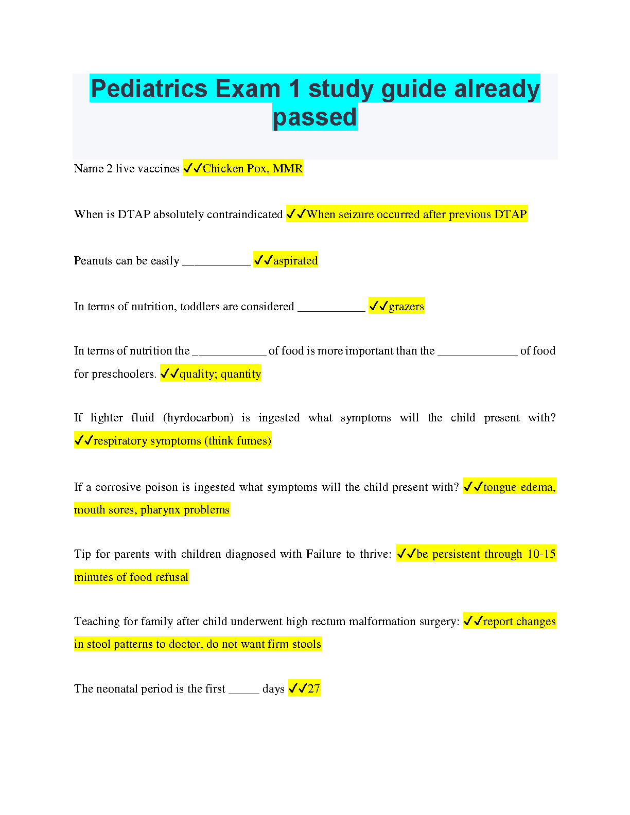 Pediatrics Exam 1 Study Guide Already Passed - 2024/2025 Edition