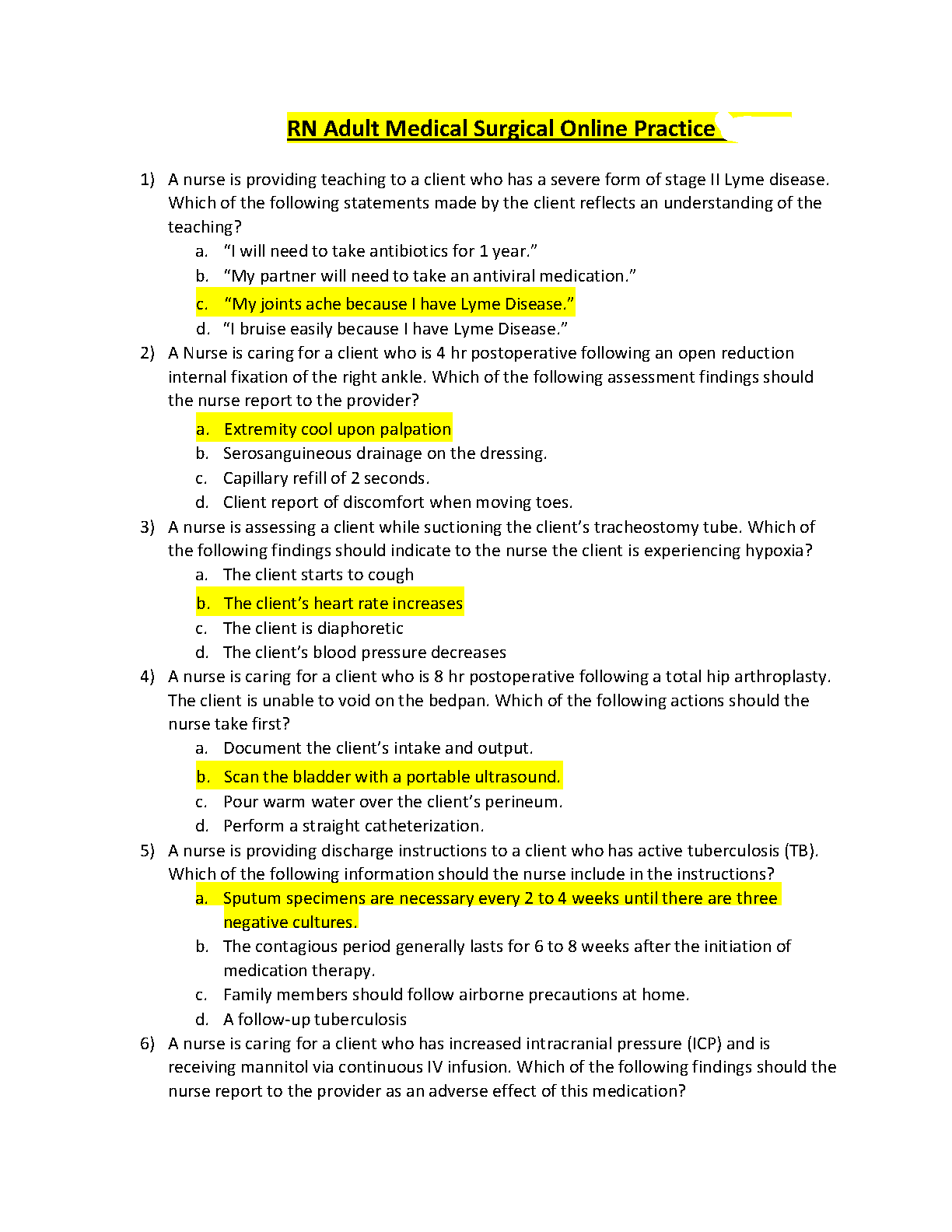 RN Adult Medical Surgical Online Practice Questions and Answers - Latest Edition for 2024/2025