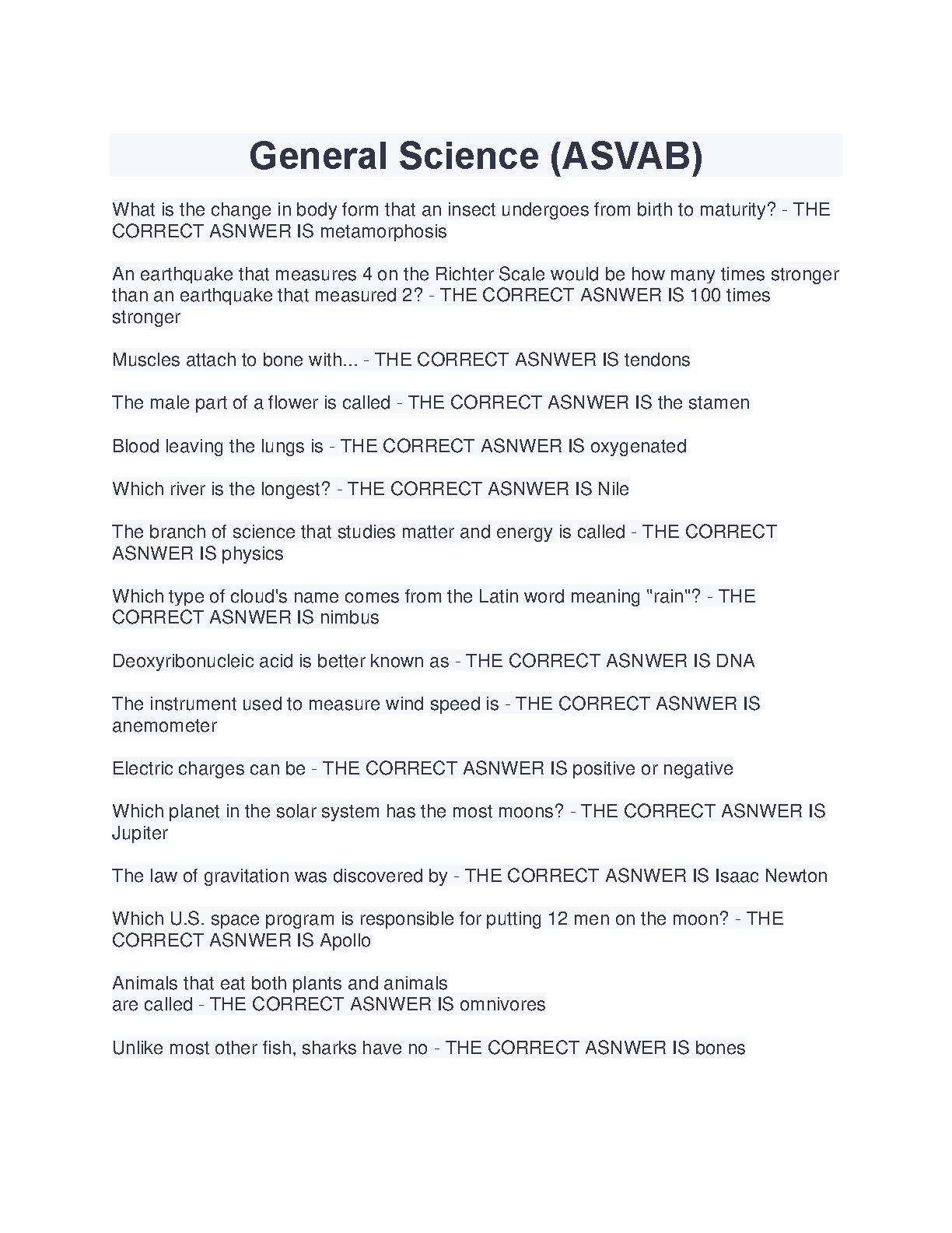 General Science (ASVAB) QUESTIONS AND CORRECT ANSWERS 2023. DOWNLOAD on www.hackedexams.com INSTANTLY.