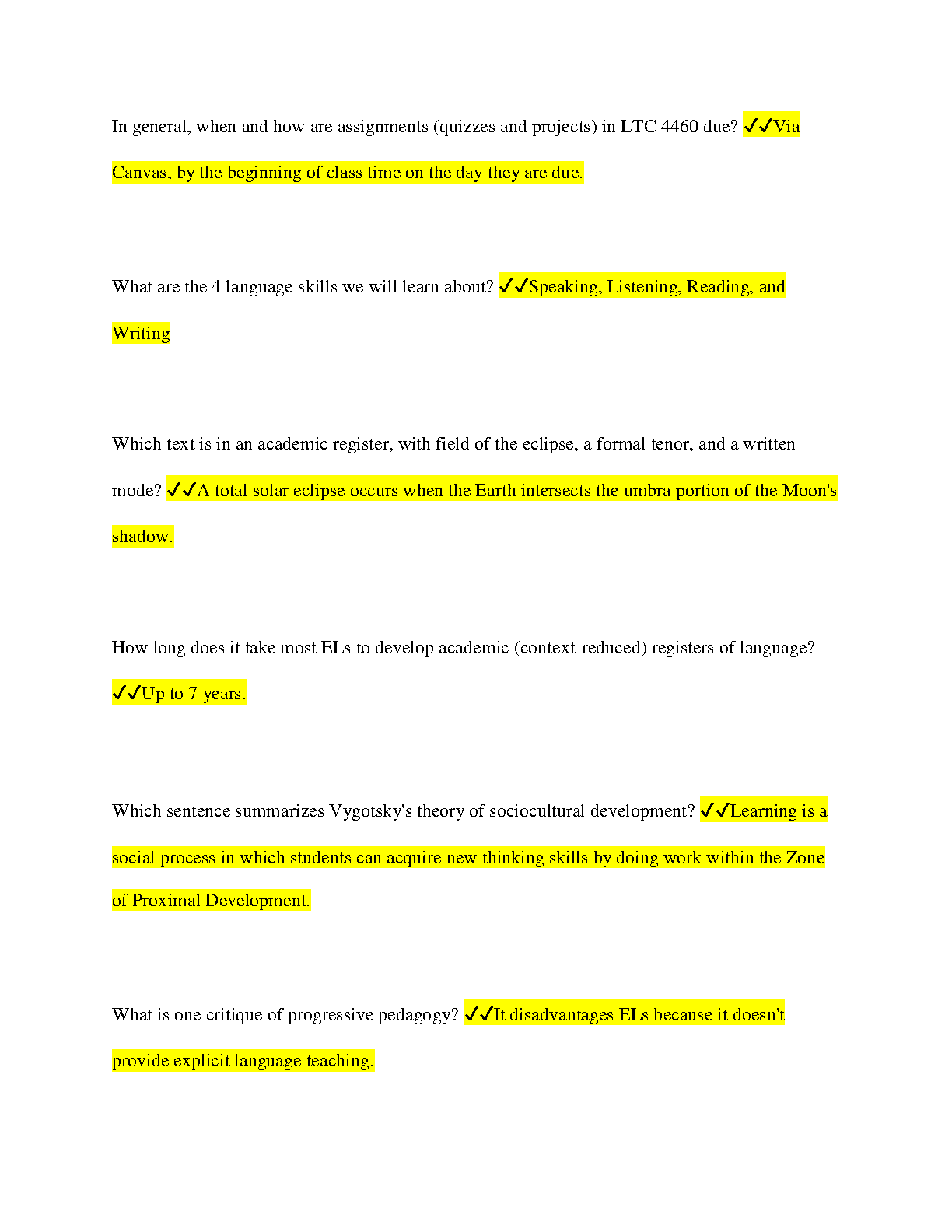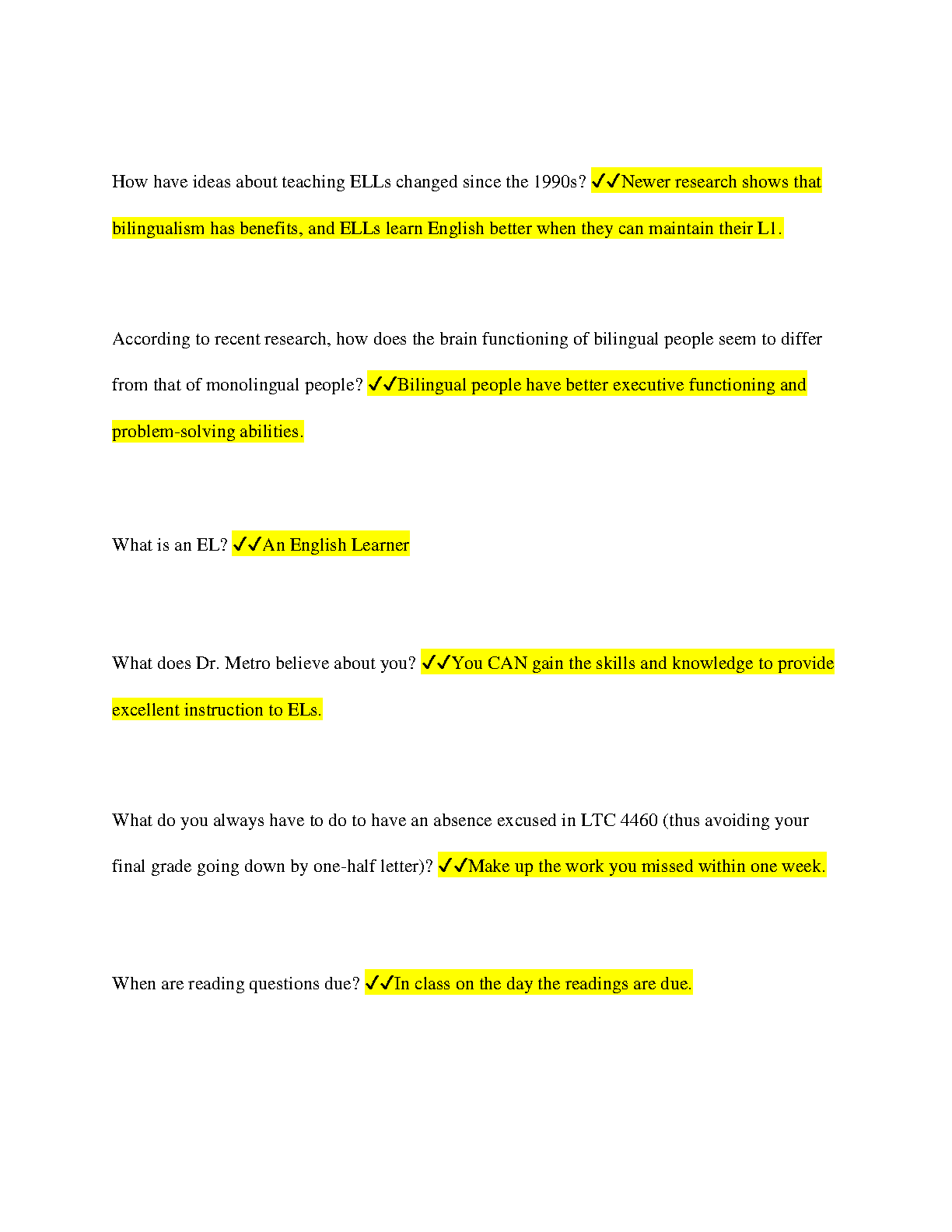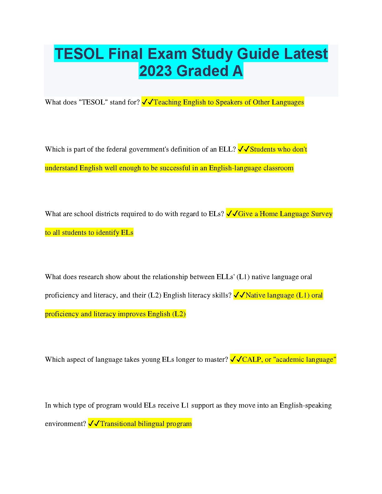 TESOL Final Exam Study Guide Latest 2023 Graded A - Complete Guide for Success