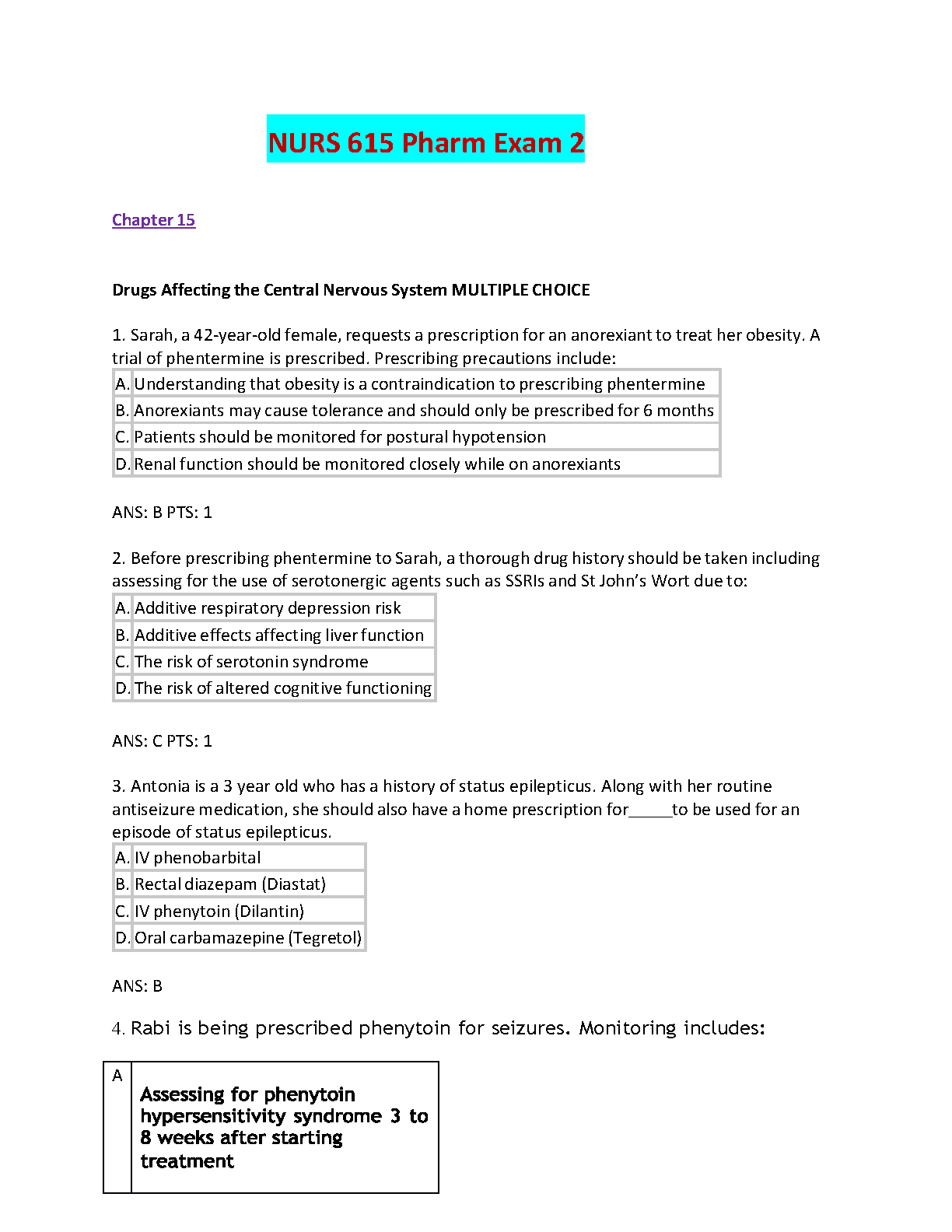 Get ahead in your Nurs 615 course with this comprehensive study guide. This resource provides the essential material from your Nurs 615 Pharm Exam 2 for the 2024/2025 academic year. Get the edge you need to ace your exam on the first attempt.