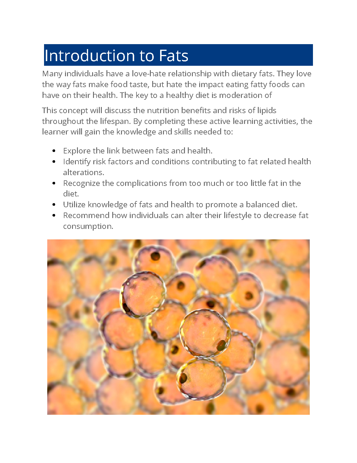 Unlock the secrets of fats with this comprehensive guide! Learn about the relationship between fats and health, identify risk factors, and understand the complications of both excess and deficient fat intake. Master the knowledge and skills needed to promote a balanced diet and achieve optimal health.
