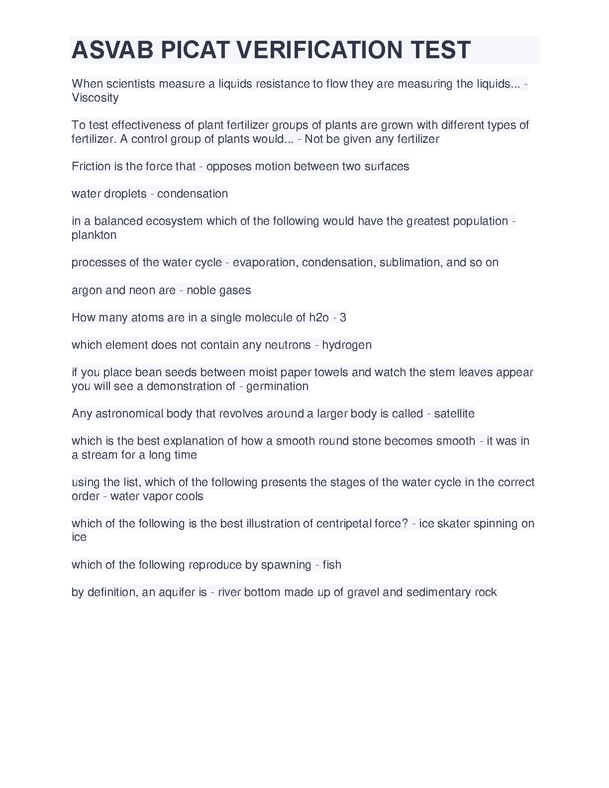 ASVAB PICAT VERIFICATION TEST WITH VERIFIED ANSWERS 2023. DOWNLOAD on www.hackedexams.com INSTANTLY.
