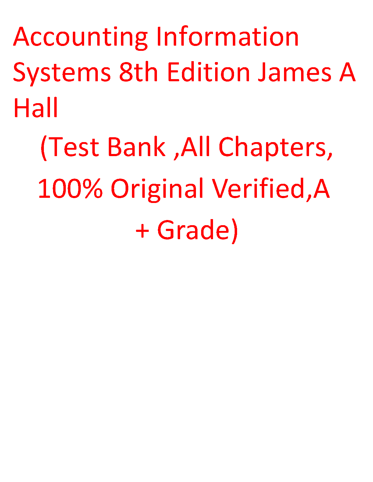 This comprehensive test bank for Accounting Information Systems, 8th Edition by James A. Hall provides a complete set of practice questions to ensure your success in your accounting courses. Boost your exam preparation and score higher with this verified and accurate test bank.