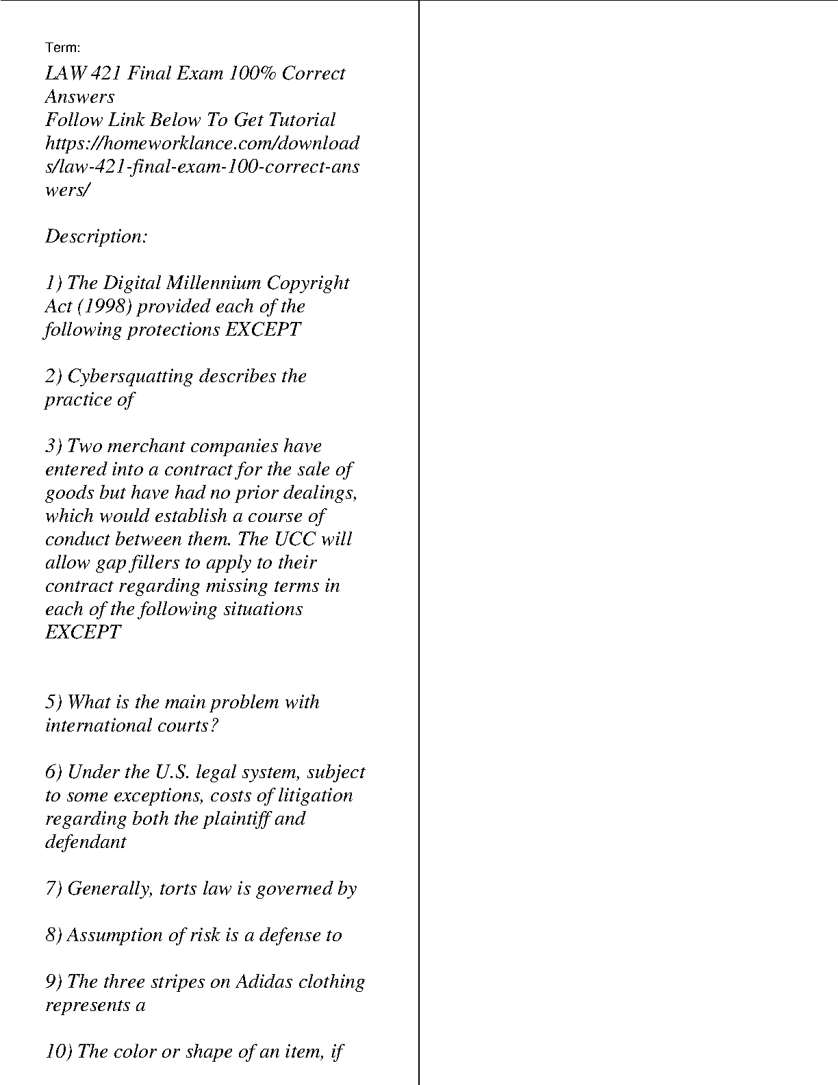 Ace your LAW 421 Final Exam with this comprehensive study guide. This resource offers 100% correct answers to the most challenging questions. Get the inside track on key concepts and ensure a confident performance. This guide is your secret weapon for avoiding resits and achieving exam success on the first attempt!