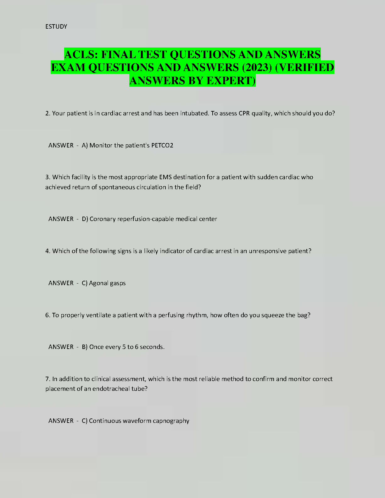 Ace your ACLS exam on the first attempt with this comprehensive set of final test questions and answers, verified by an expert in 2023. Get ready for success!