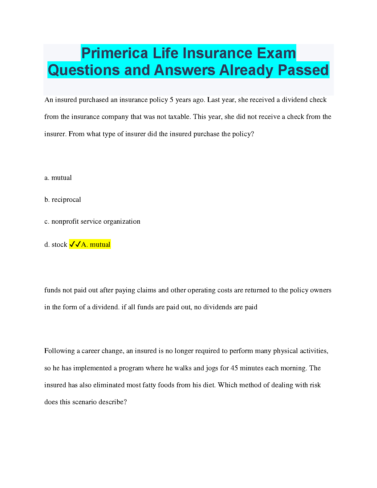 Primerica Life Insurance Exam Questions and Answers - 2024/2025 Edition - Guaranteed Exam Success On First Attempt - Avoid Resits
