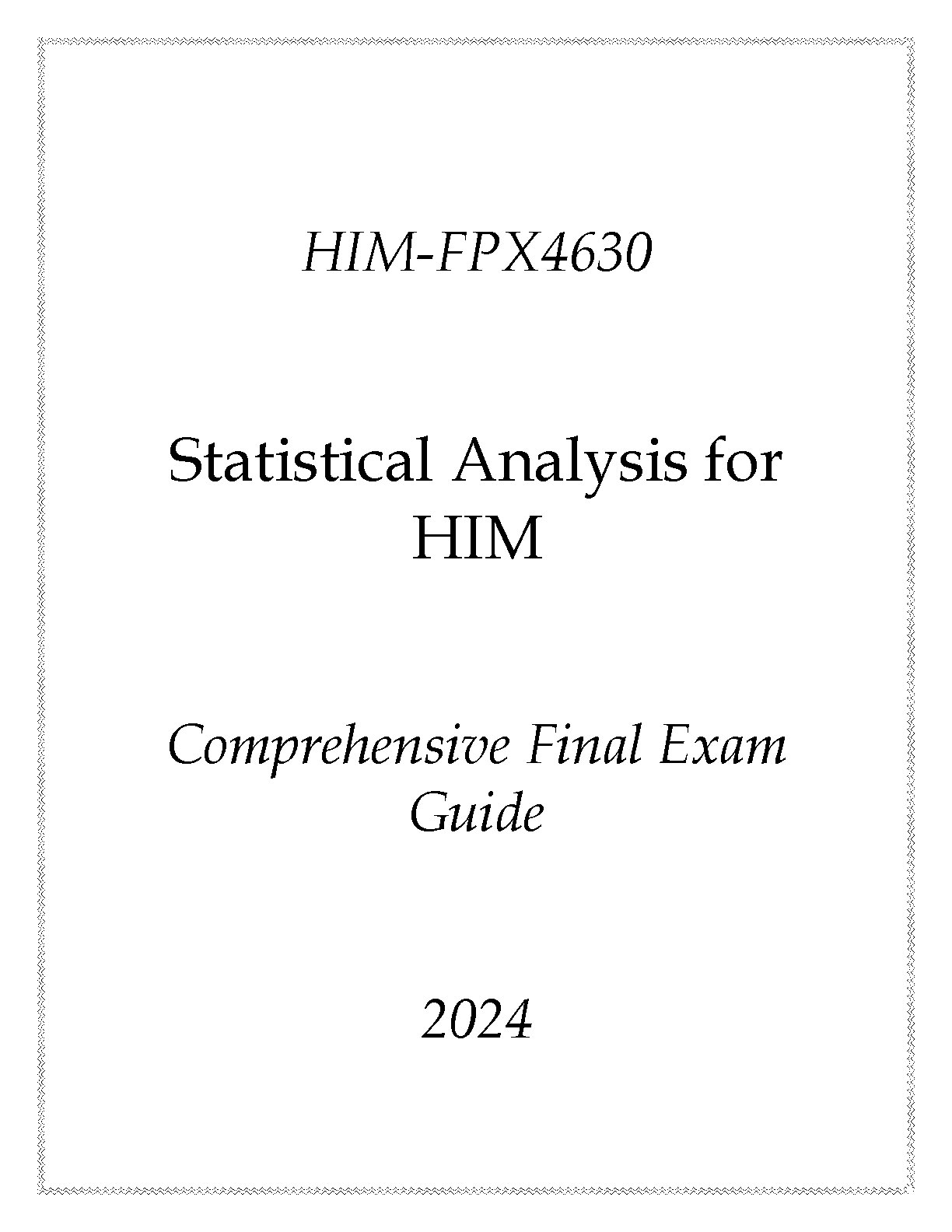 This comprehensive study guide is designed to help you ace the HIM-FPX4630 Statistical Analysis for HIM final exam. It covers all the key concepts and topics, providing you with the knowledge and practice you need to succeed.