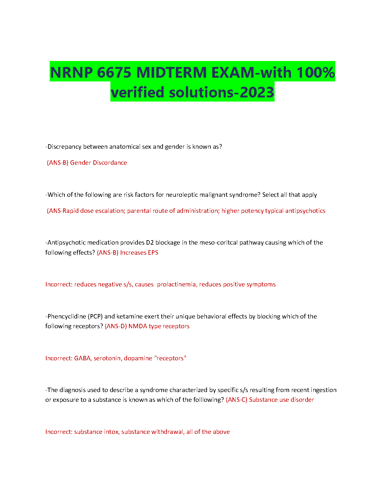 Ace your NRNP 6675 Midterm Exam with this comprehensive study guide, featuring 100% verified solutions and expert insights. Get access to a vast collection of practice questions and answers covering all key concepts, ensuring you are well-prepared for exam success on your first attempt. Download today and avoid resits.