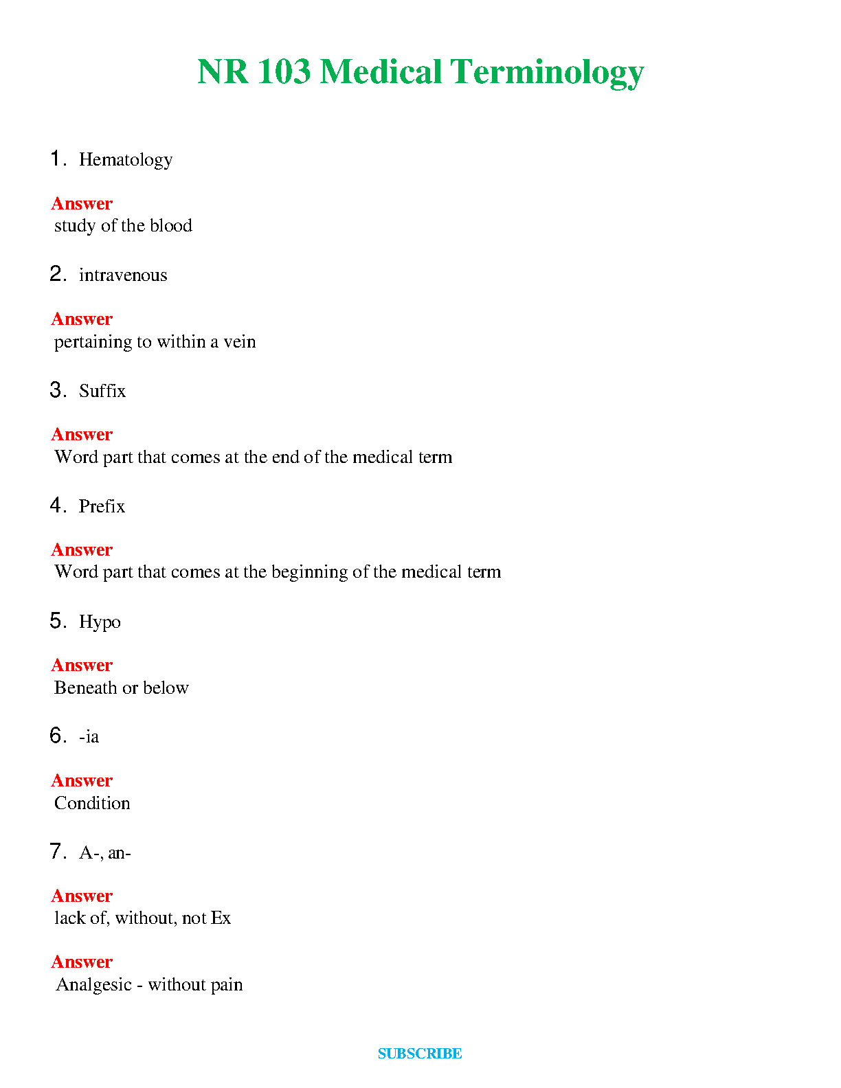 NR 103 Medical Terminology : Master Medical Terminology with Ease for 2024/2025