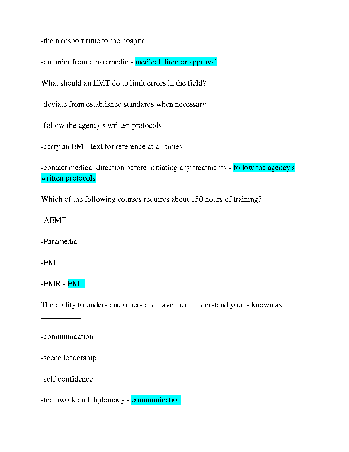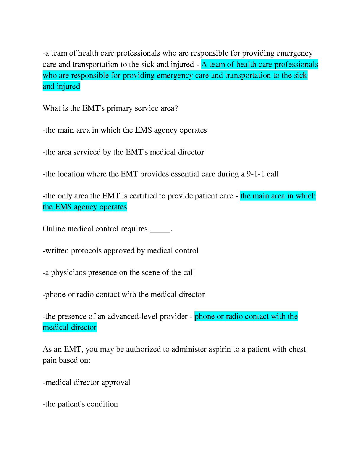 EMT Final Exam Questions & Answers - Question Bank/Text Bank: All Answers Verified. A+ Guide 2024/2025