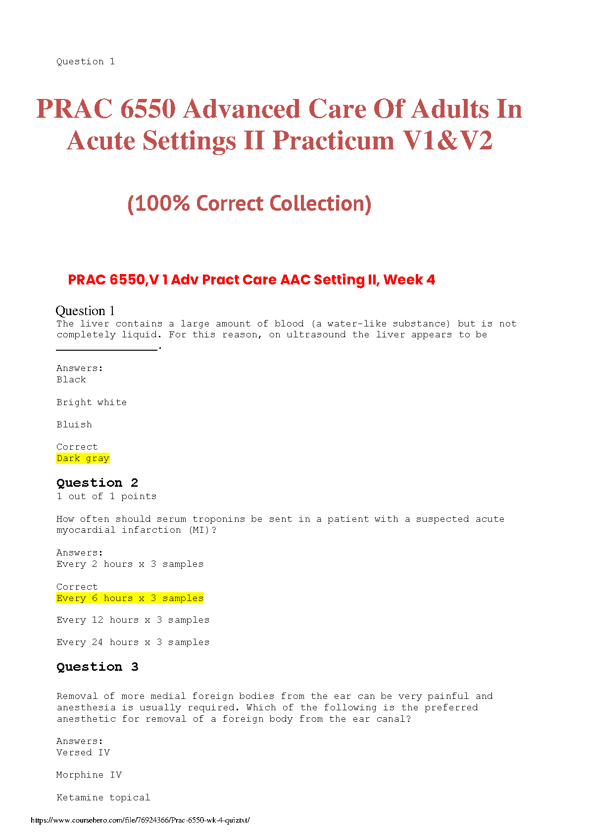 PRAC 6550 V1 & V2 Advanced Care of Adults in Acute Settings II Practicum by Linda A. A. Chamberlain & Patricia A. D. Jeffries - 100% Correct Collection