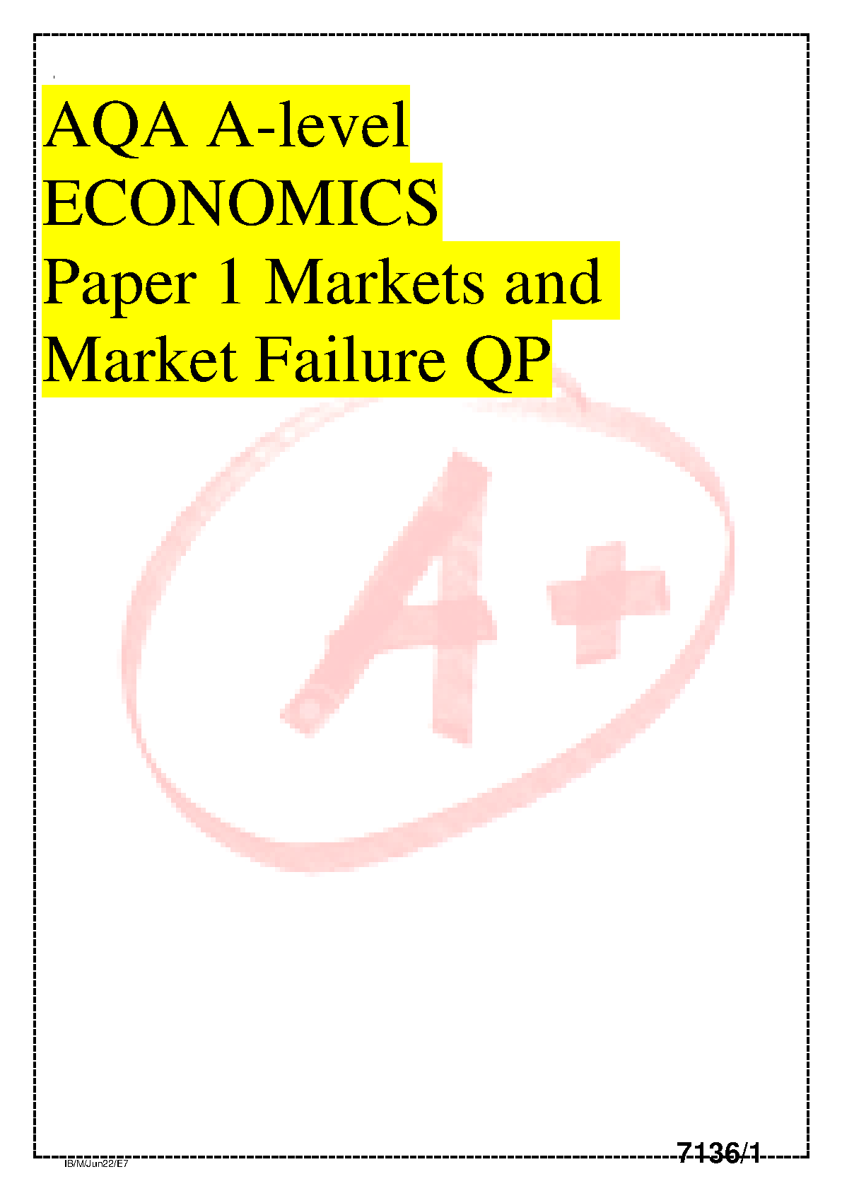 AQA A-Level Economics Paper 1 Markets and Market Failure QP - 2024/2025 Edition by AQA