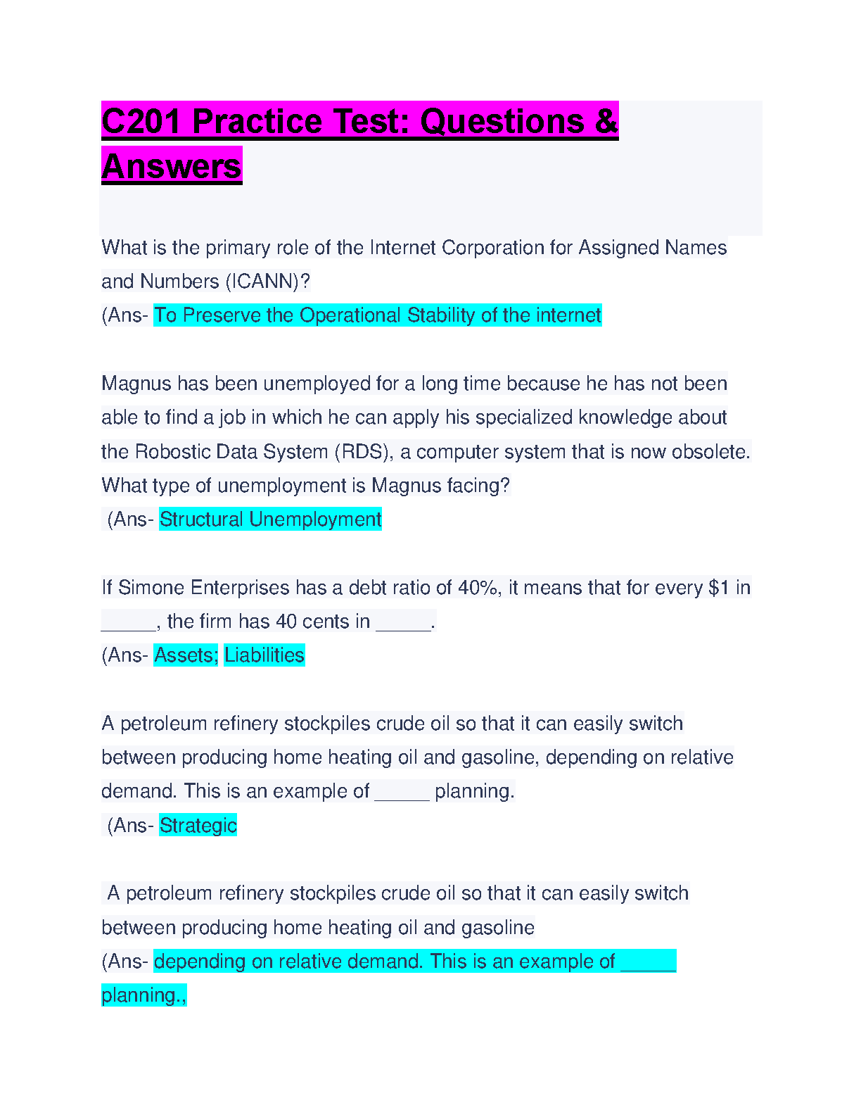 C201 Practice Test: Questions & Answers - First Attempt Success Guide for 2024/2025