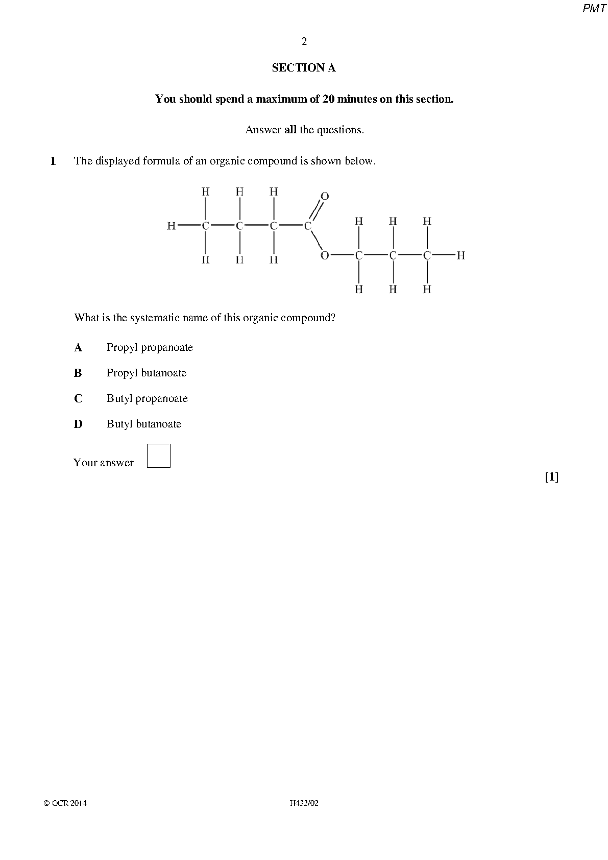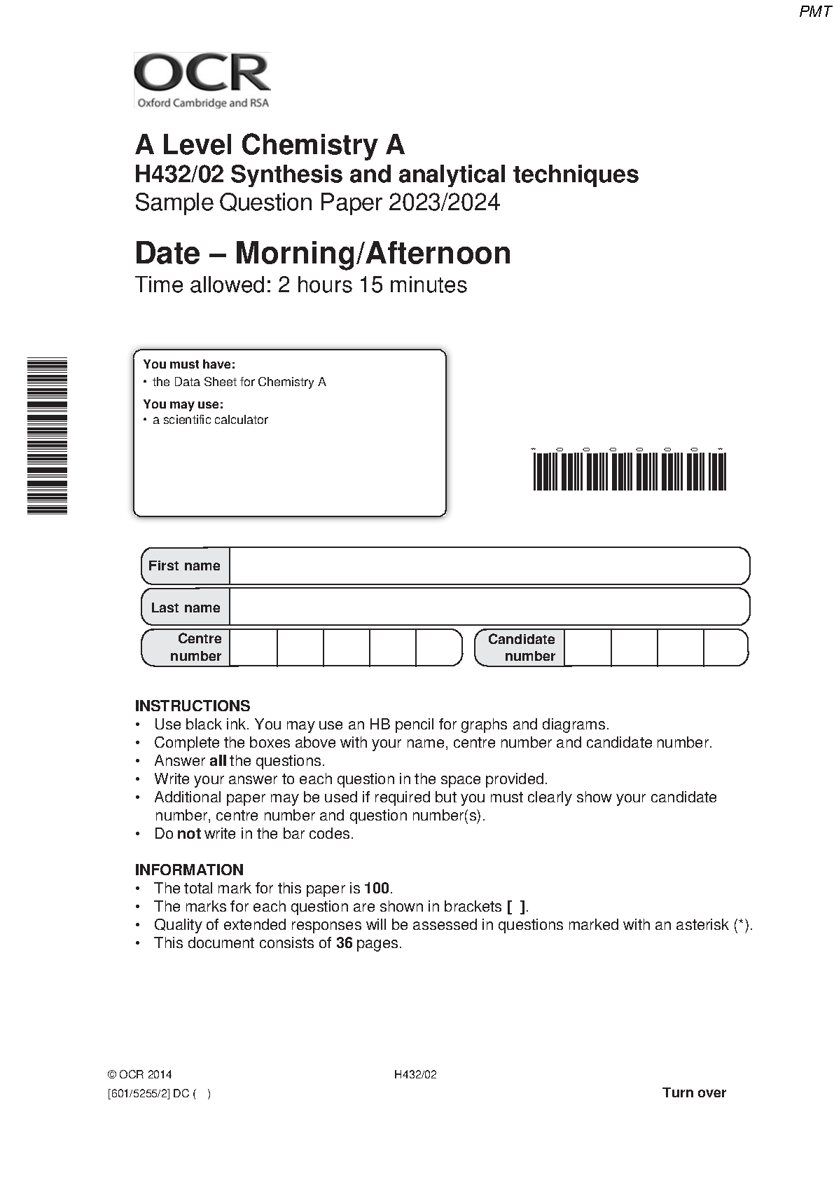 OCR A Level Chemistry A H432/02 Synthesis and analytical techniques Sample Question Paper 2023/2024 by OCR