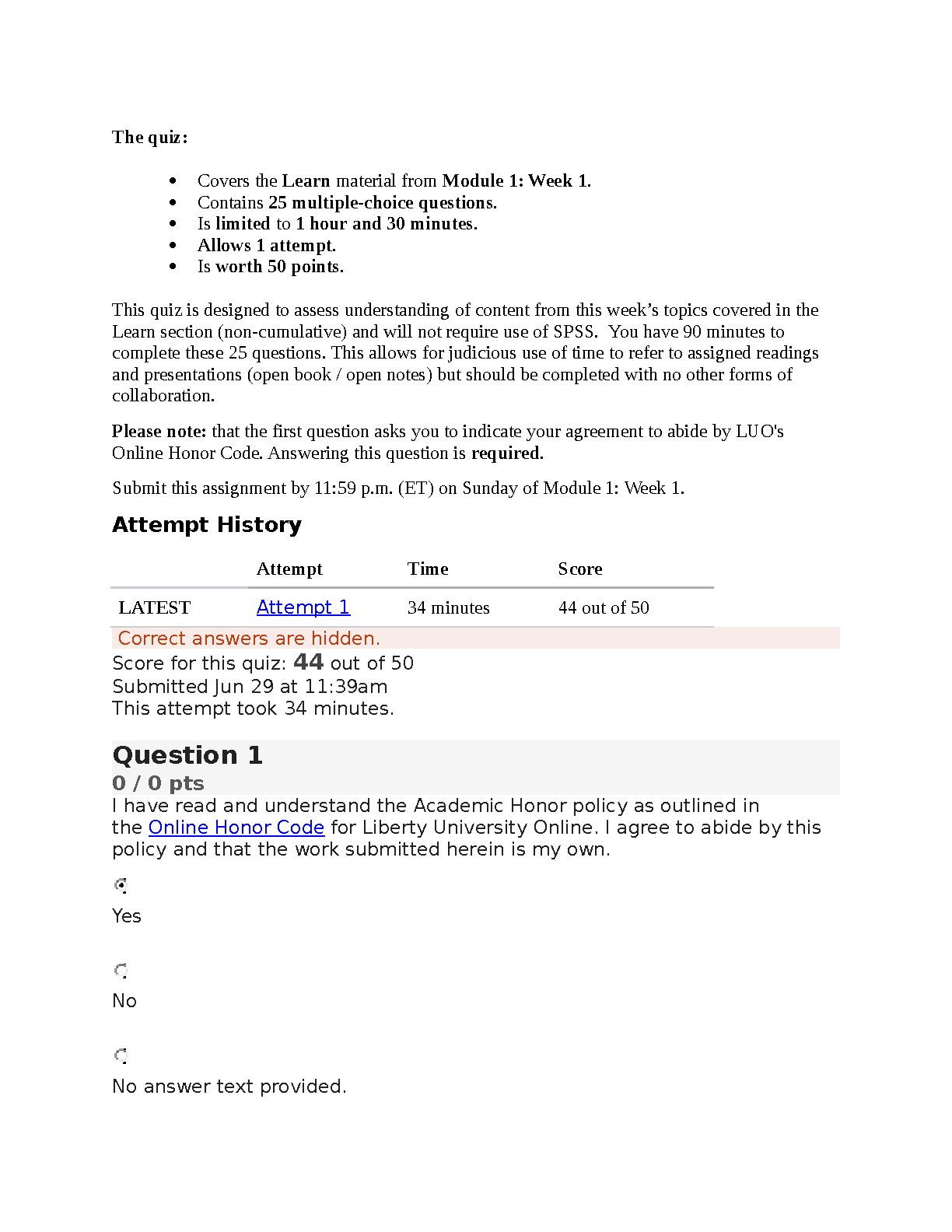 Liberty University Online - Module 1 Week 1 Quiz: Learn Materials for First Time Exam Pass