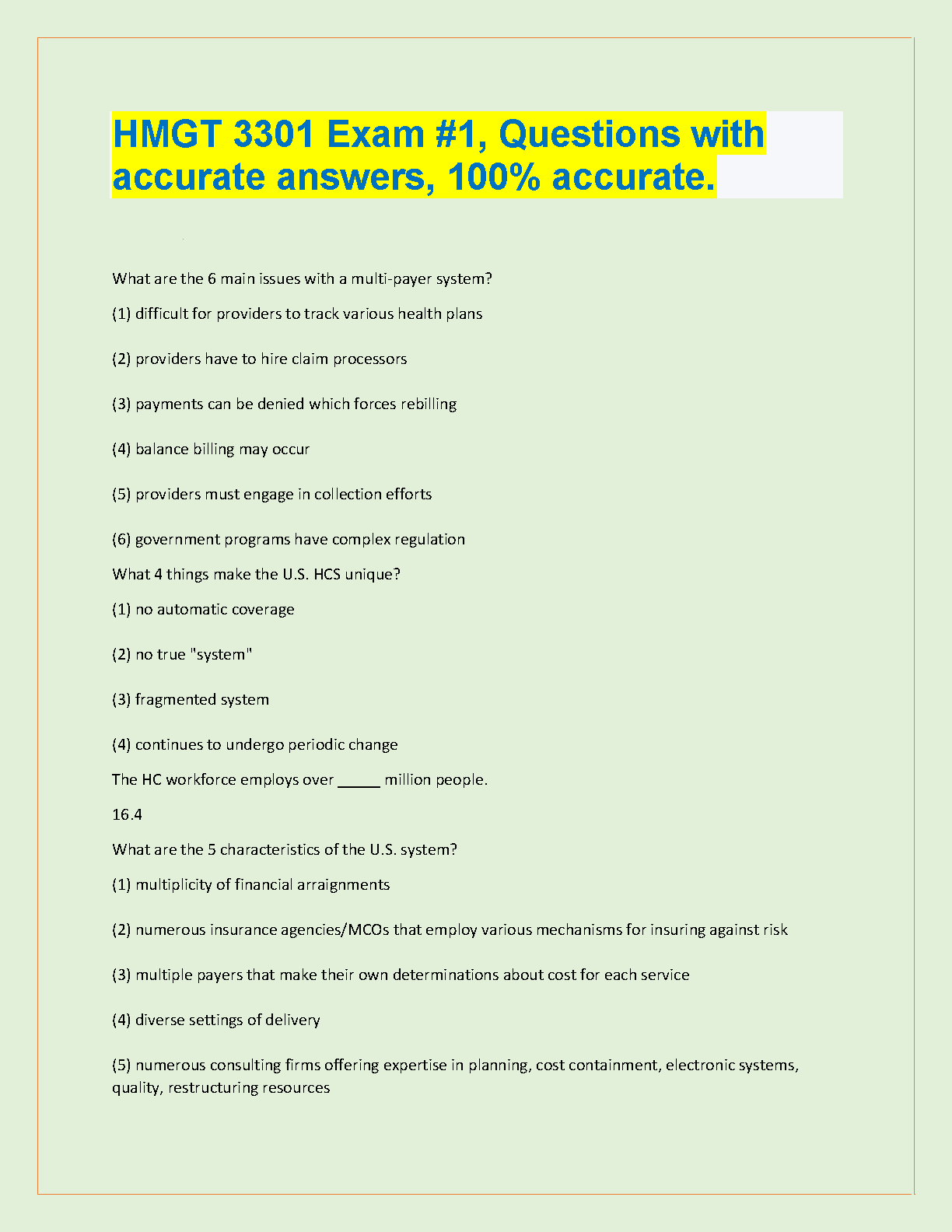 HMGT 3301 Exam #1 Questions with Accurate Answers - Edition 2024/2025
