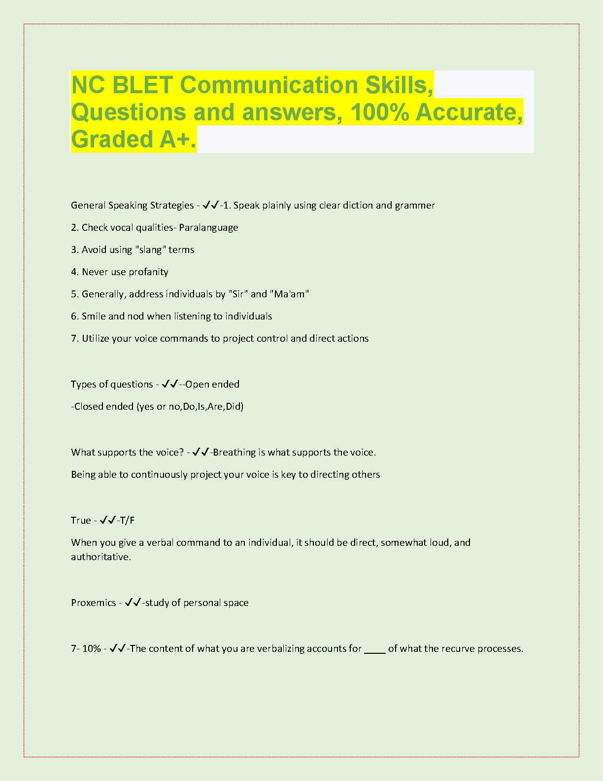 Ace your NC BLET exam on the first try with this comprehensive study guide, packed with 100% accurate answers and detailed explanations. Covering communication skills and strategies essential for law enforcement professionals. This resource is designed to help you master the content and feel confident on exam day.