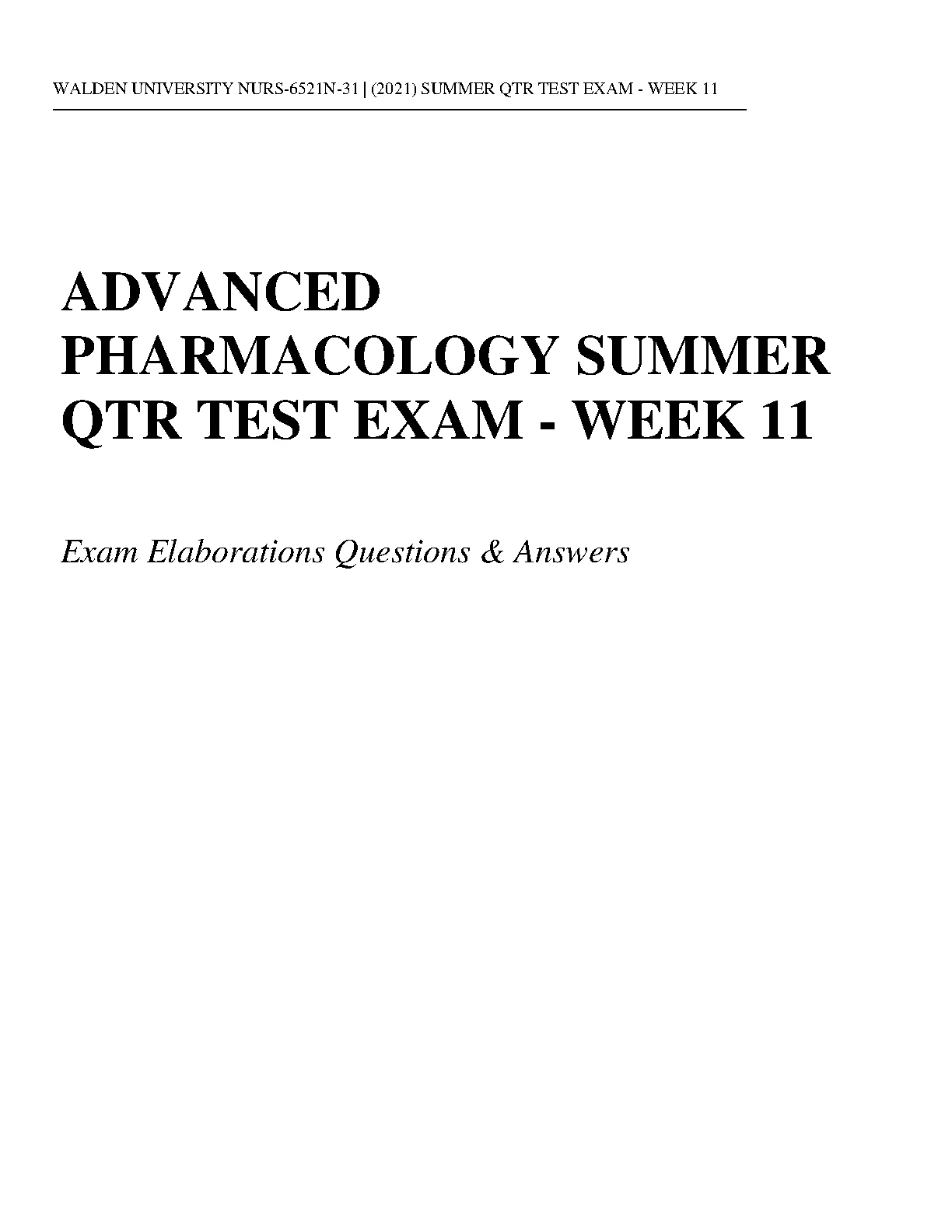 ADVANCED PHARMACOLOGY SUMMER QTR TEST EXAM - WEEK 11 Exam Elaborations Questions & Answers BRAND NEW 2023!!. DOWNLOAD on www.hackedexams.com INSTANTLY.