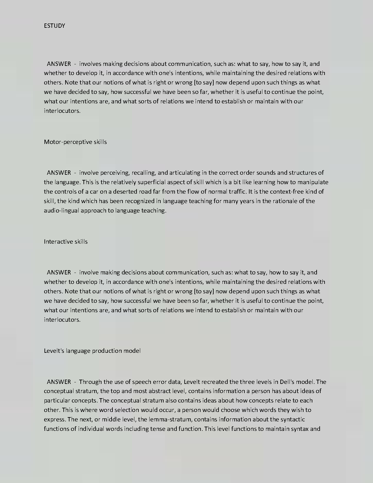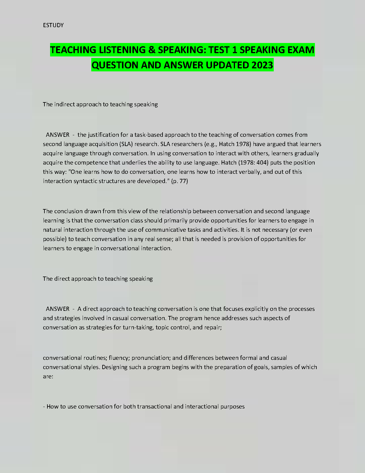 Teaching Listening & Speaking: Test 1 Speaking Exam Question and Answer Updated 2023 - By Hatch, E.