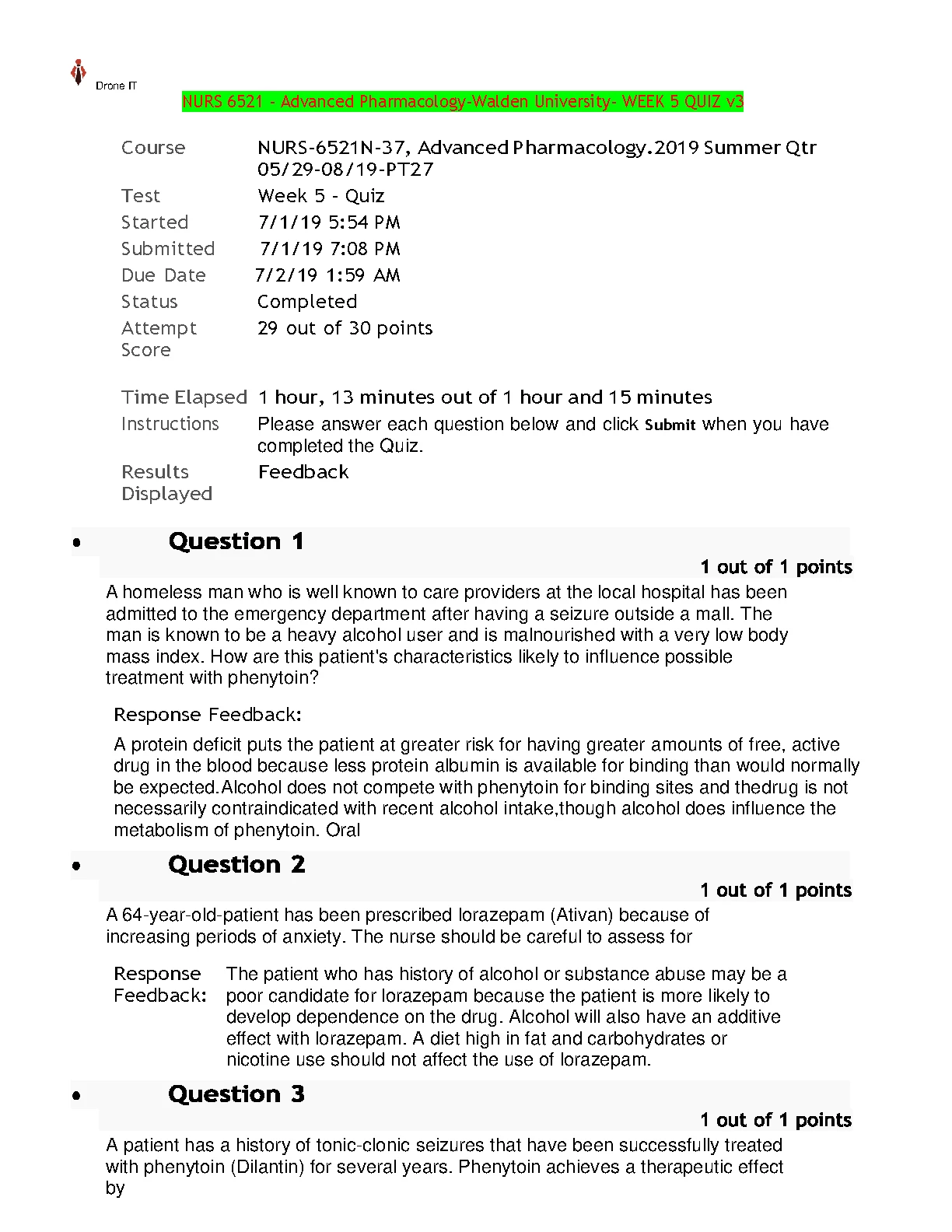 NURS 6521 - Advanced Pharmacology-Walden University- WEEK 5 QUIZ v3 2023. DOWNLOAD on www.hackedexams.com INSTANTLY.