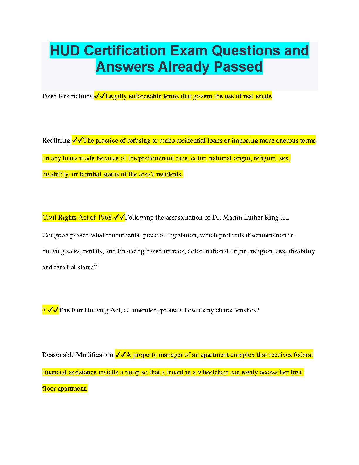 HUD Certification Exam Questions and Answers Already Passed 2024/2025 Edition: Ace Your Exam on the First Attempt