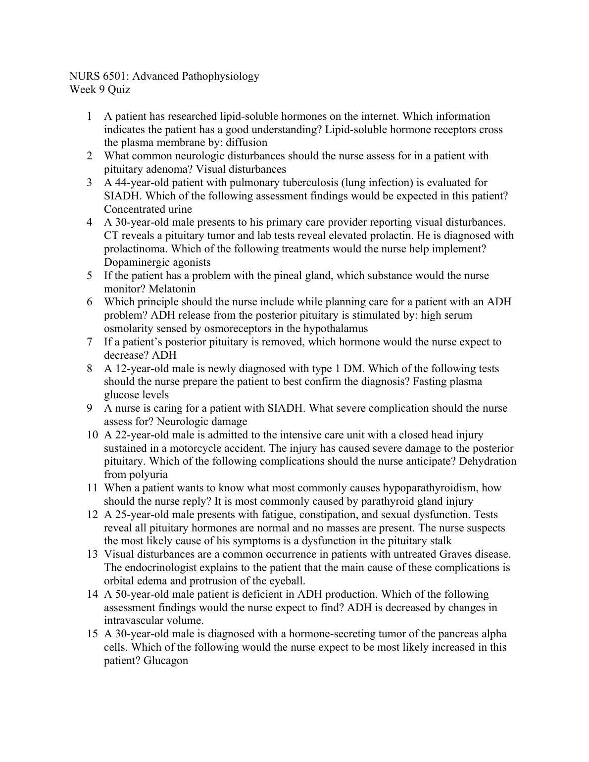NURS 6501: Advanced Pathophysiology Week 9 Quiz UPDATED 2023. DOWNLOAD on www.hackedexams.com INSTANTLY.