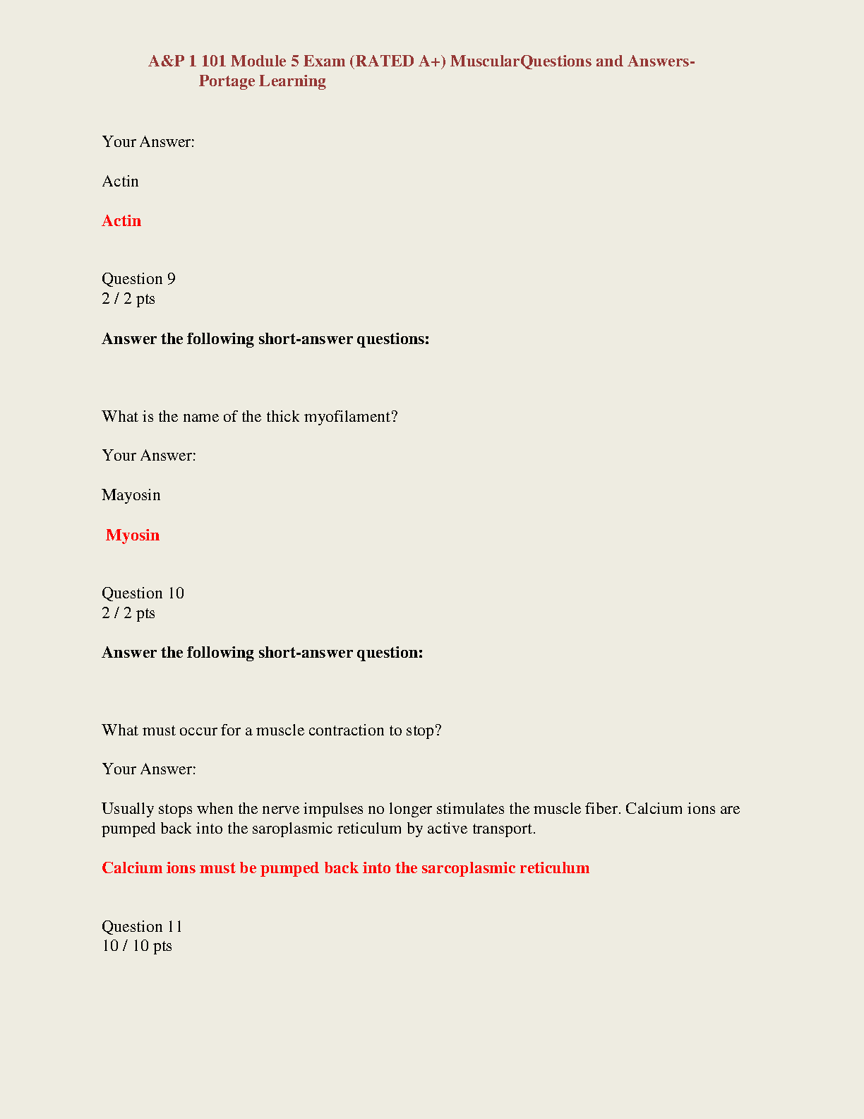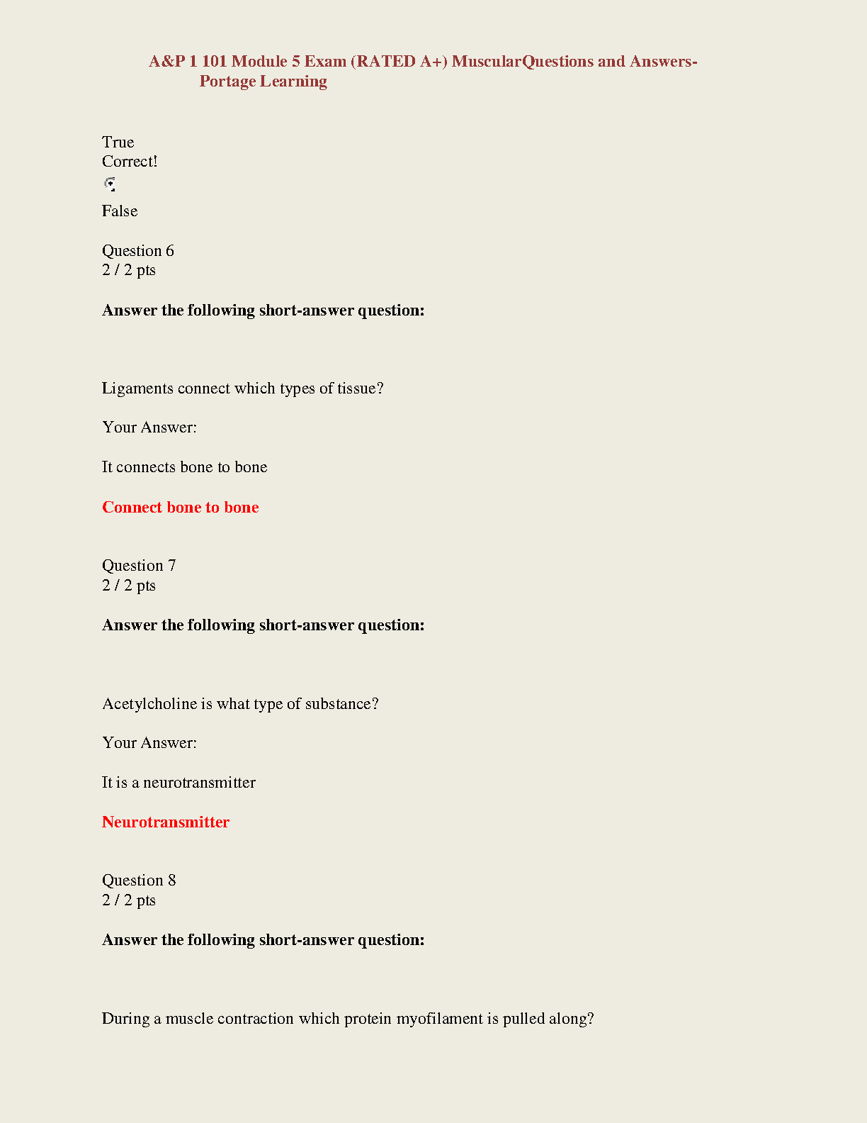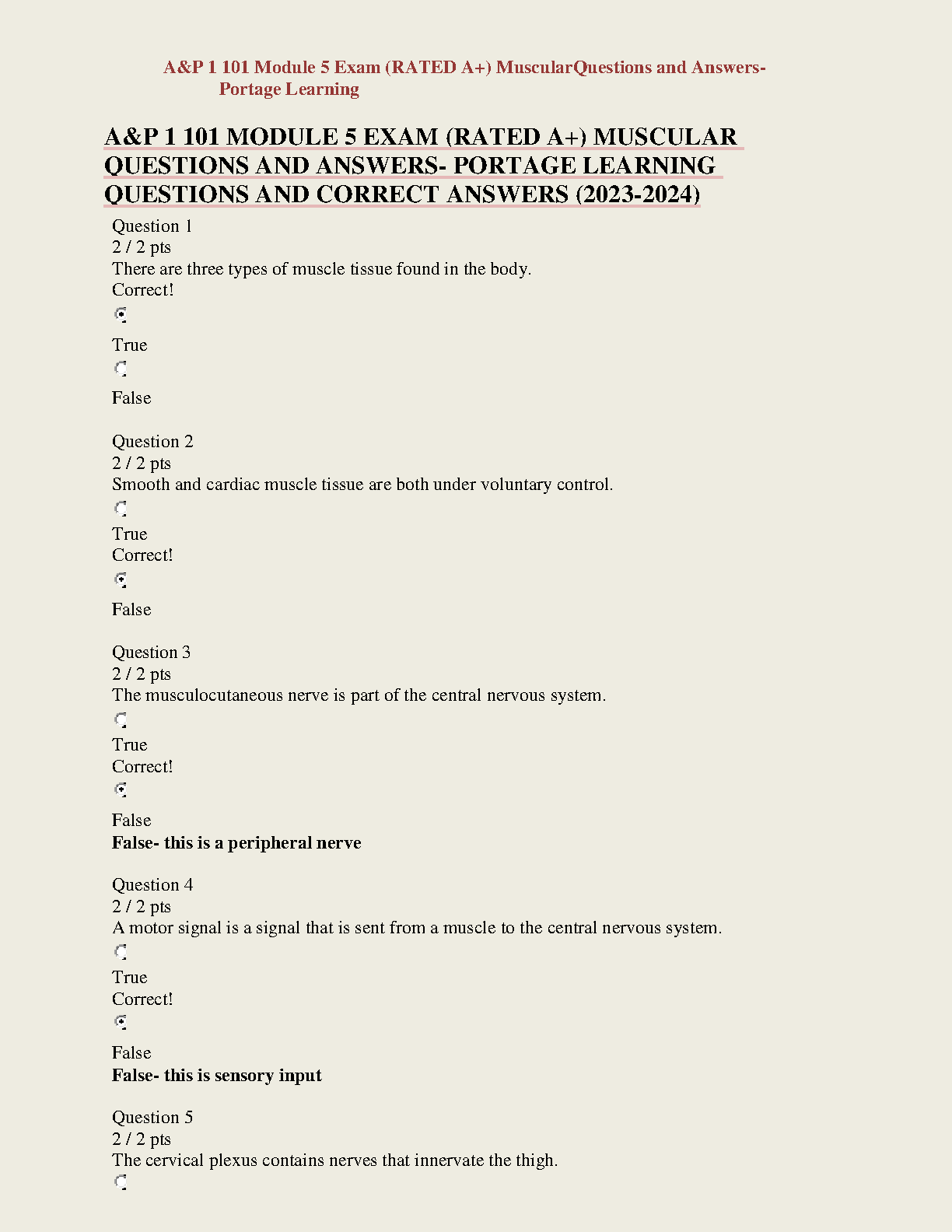 A&P 1 101 Module 5 Exam (Rated A+) Muscular Questions and Answers- Portage Learning (2023-2024)