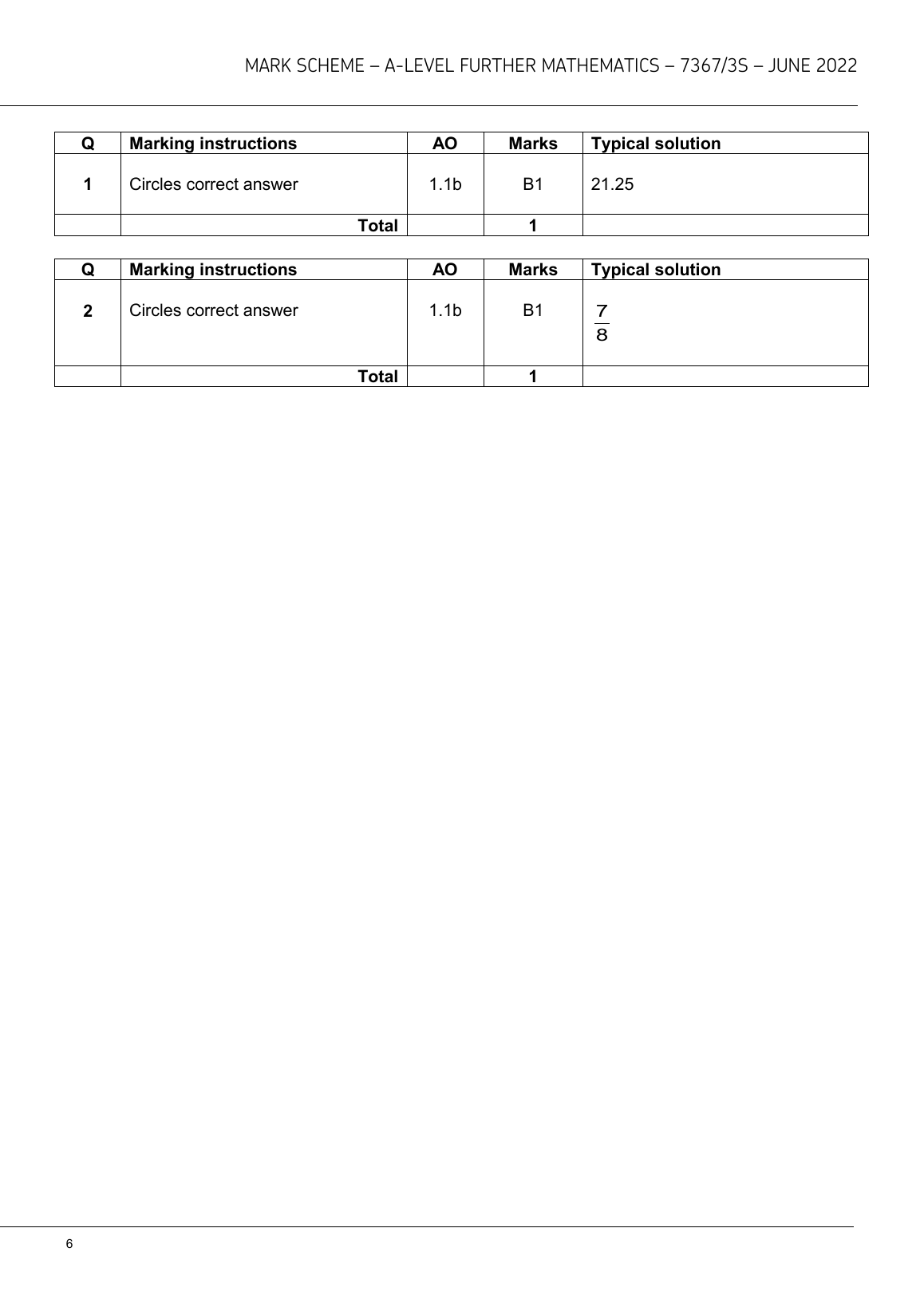 AQA A LEVEL FURTHER MATHEMATICS PAPER 3 JUNE 2022 MARK SCHEME (7367/3S: Statistics)