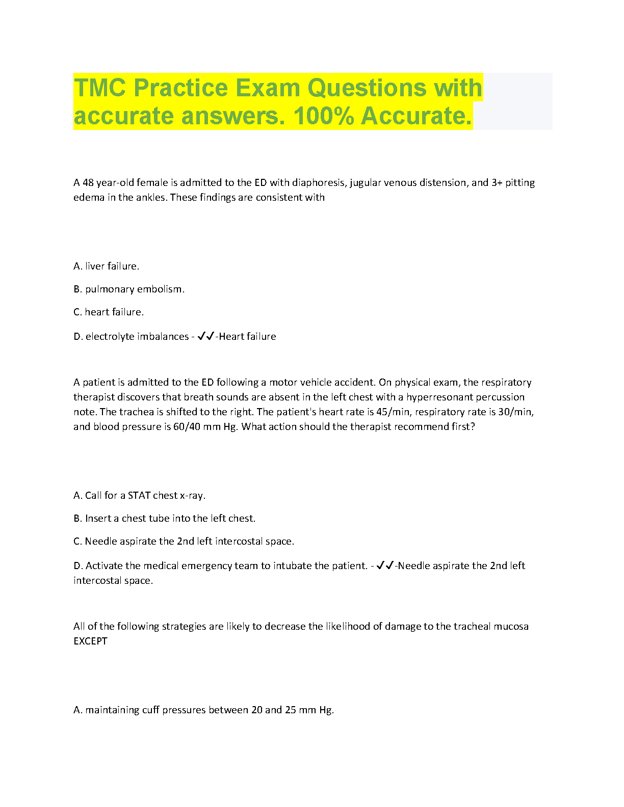 TMC Practice Exam Questions with Accurate Answers - 2024/2025 Edition - Pass Your Exams on the First Attempt