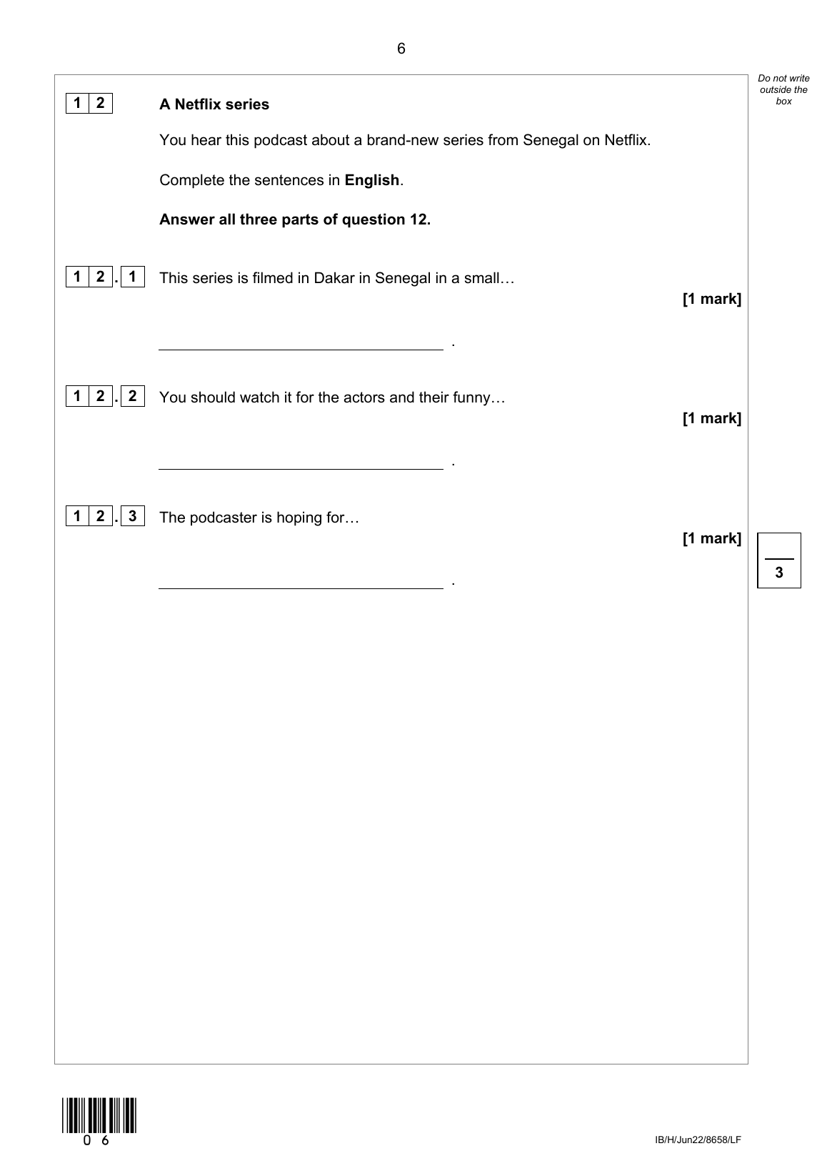 AQA GCSE FRENCH PAPER 1 JUNE 2022 QUESTION PAPER (8658/LF: Foundation Tier - Listening)