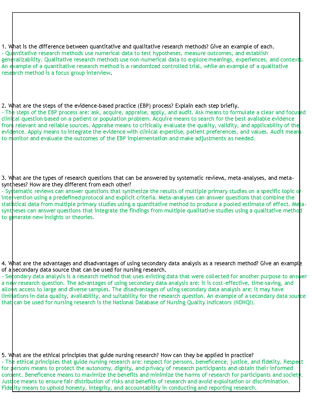 This comprehensive study guide provides detailed answers and explanations to prepare you for your NR 585 exam on Research Methods and Evidence-Based Practice for Advanced Nursing Practice. Ideal for students pursuing their Master's or Doctoral degrees in Nursing, this resource covers key concepts, theories, and applications, ensuring you ace your exam on the first attempt.
