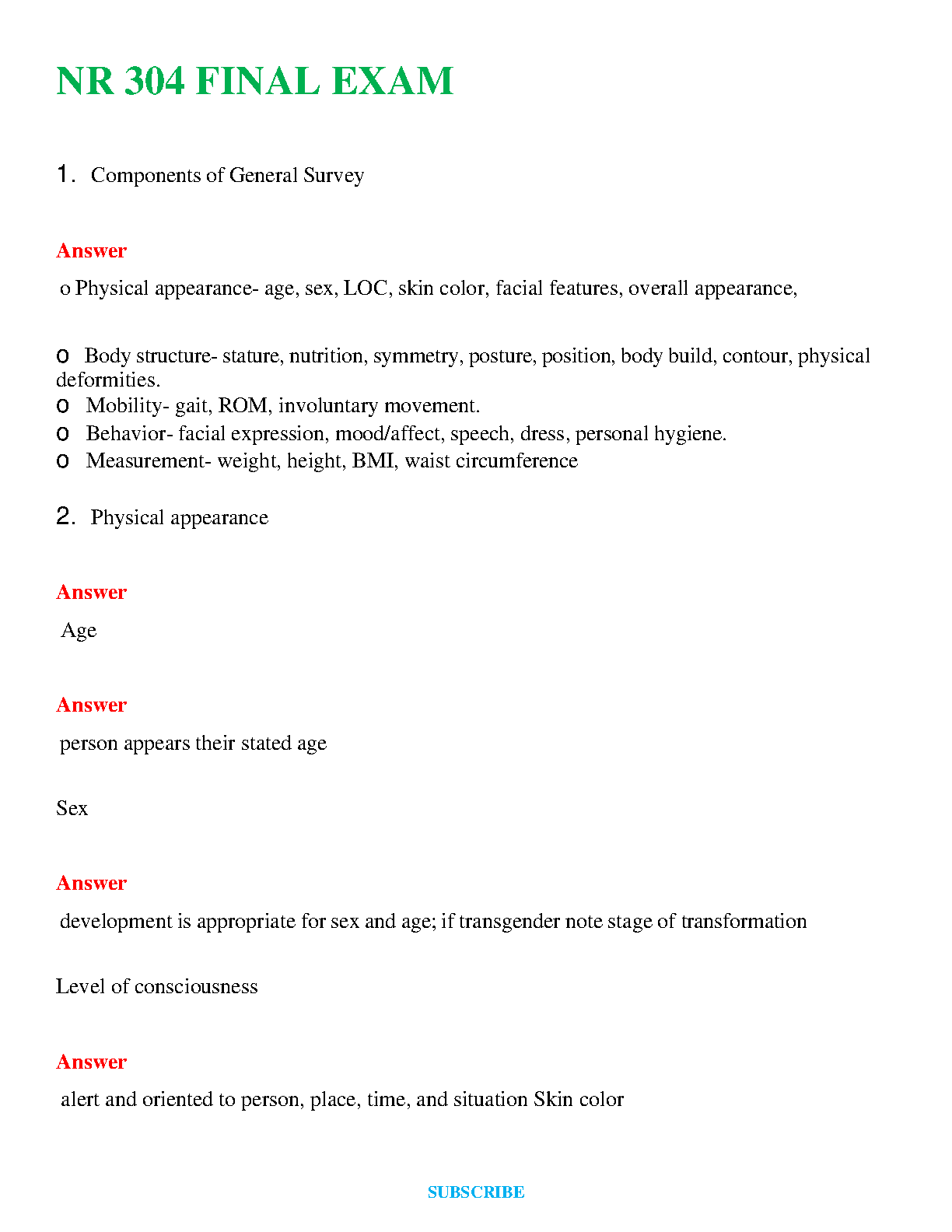 NR 304 Final Exam Study Guide: Ace Your Nursing Exam and Avoid Resits