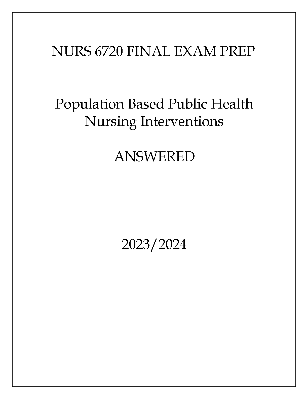 Nurs 6720 Final Exam Prep 2023-2024 - Population Based Public Health Nursing Interventions