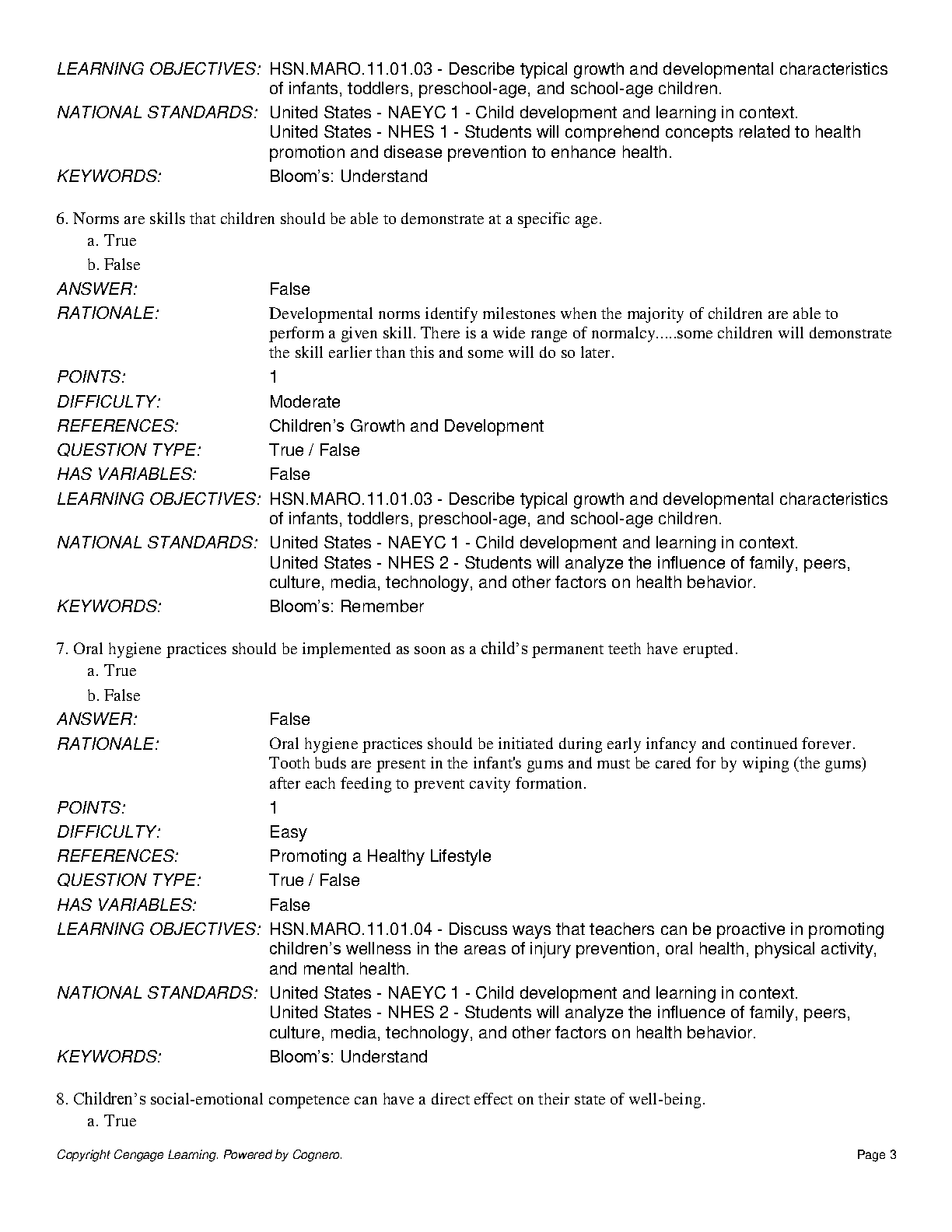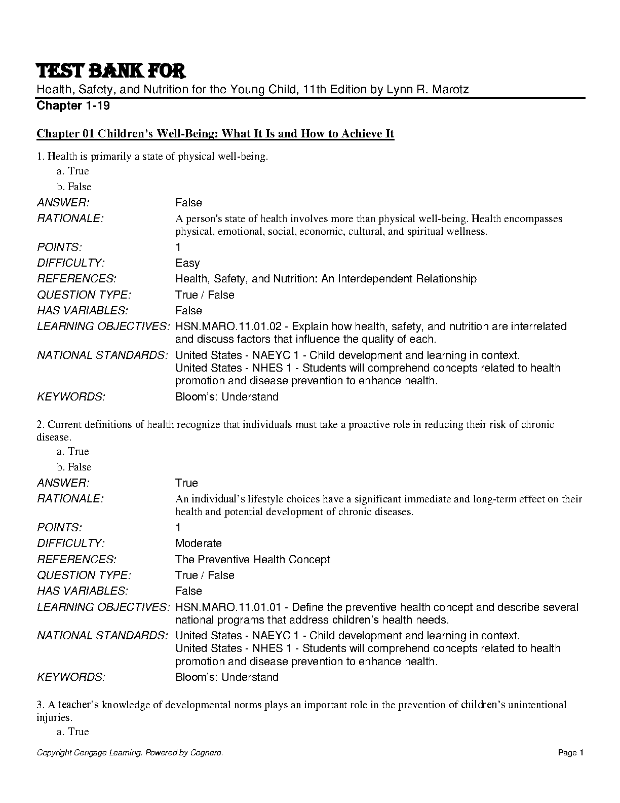 Test Bank for Health, Safety, and Nutrition for the Young Child, 11th Edition by Lynn R. Marotz