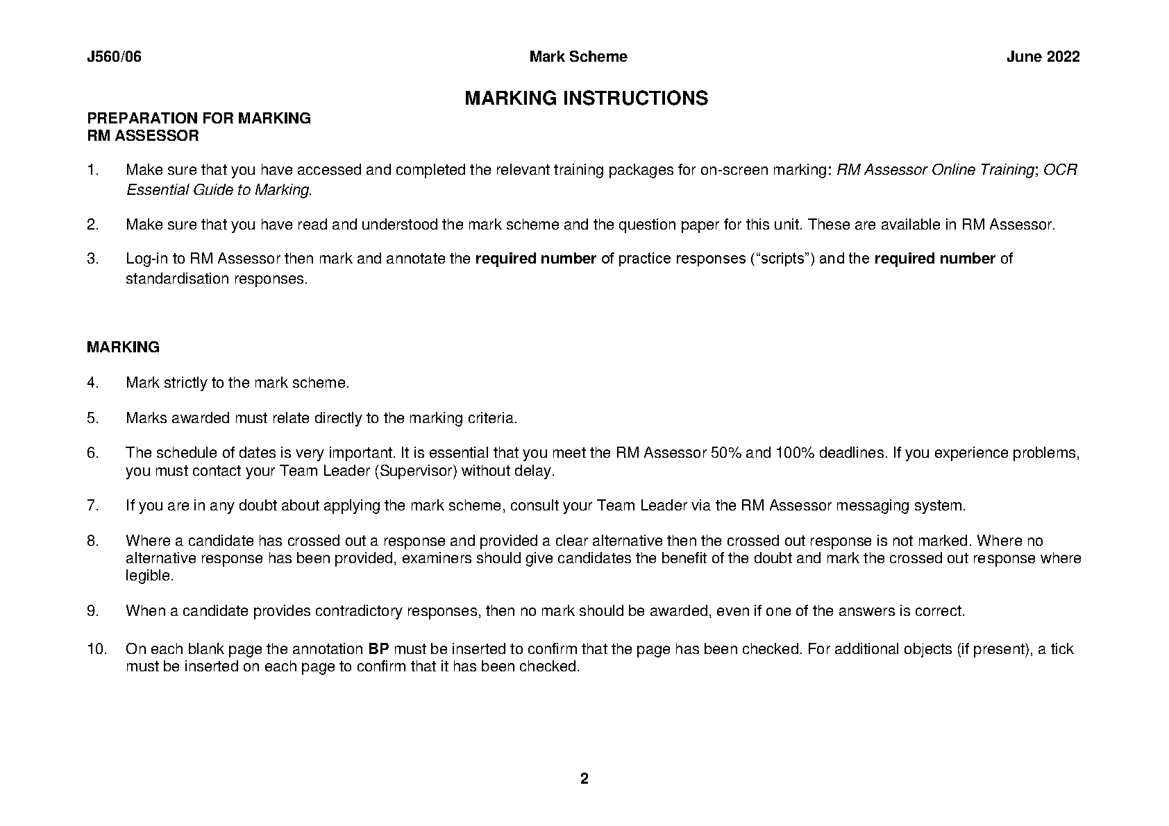 OCR GCSE Mathematics - Paper 6 (Higher tier) - June 2022 Mark Scheme