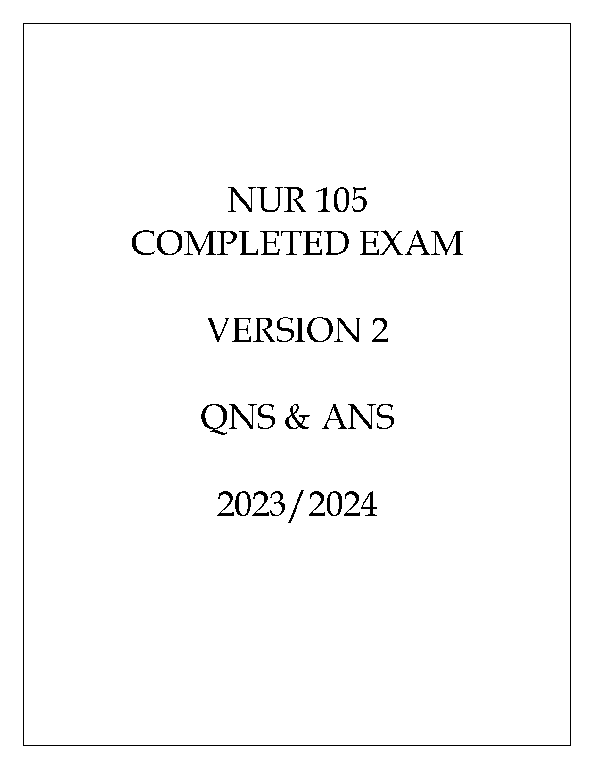 NUR 105 Completed Exam Version 2 - Questions and Answers for 2024/2025 Academic Year