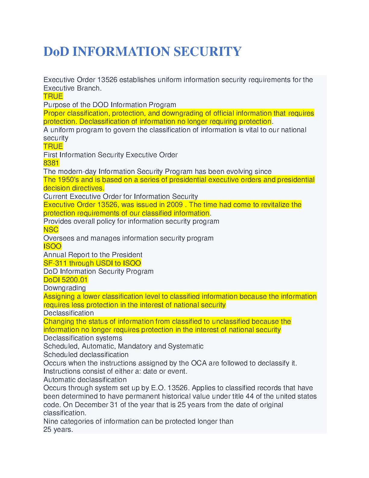 Gain a thorough understanding of the DoD Information Security Program, covering topics like classification, declassification, and the role of Executive Orders in safeguarding national security.