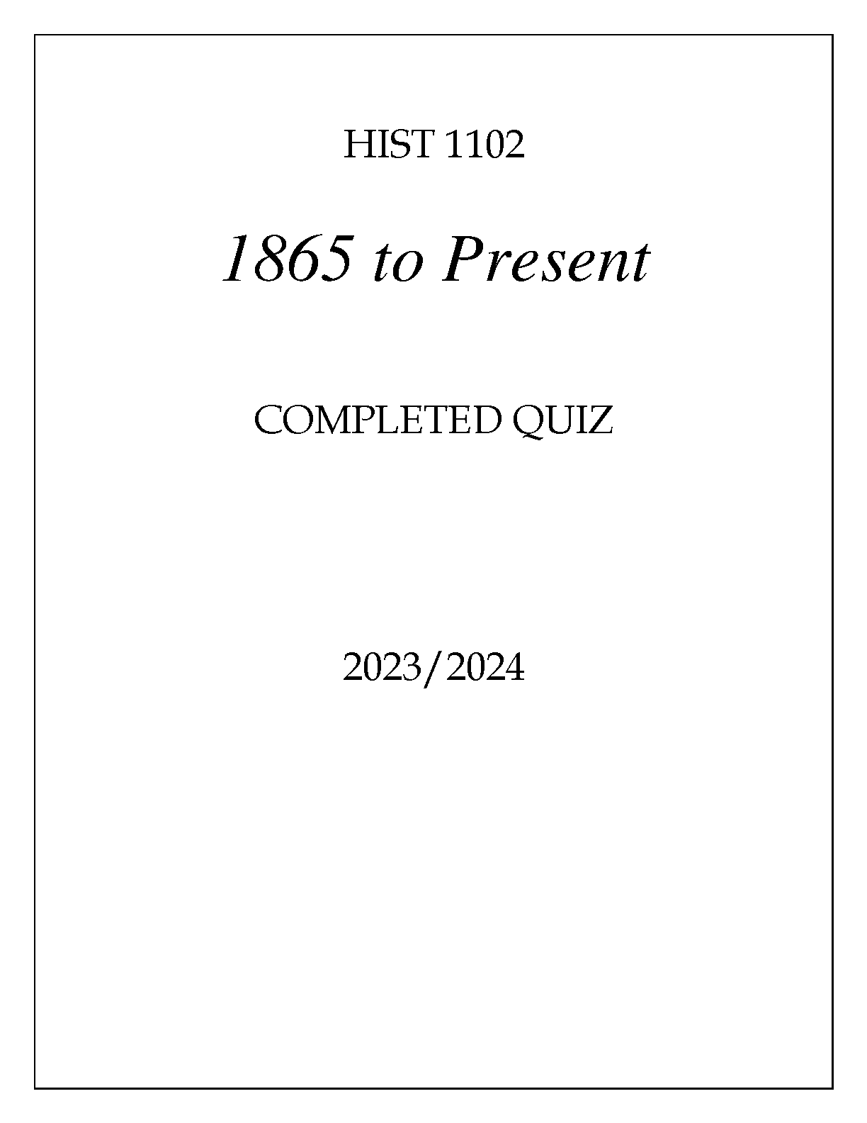 HIST 1102 1865 to Present - Completed Quiz for 2024/2025