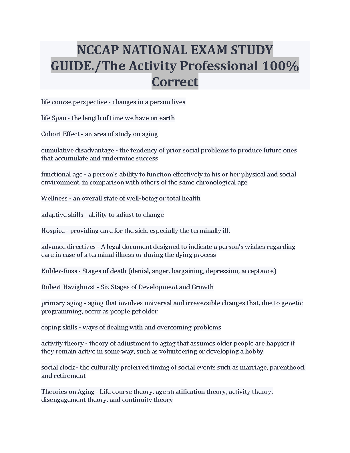 NCCAP National Exam Study Guide: The Activity Professional 100% Correct